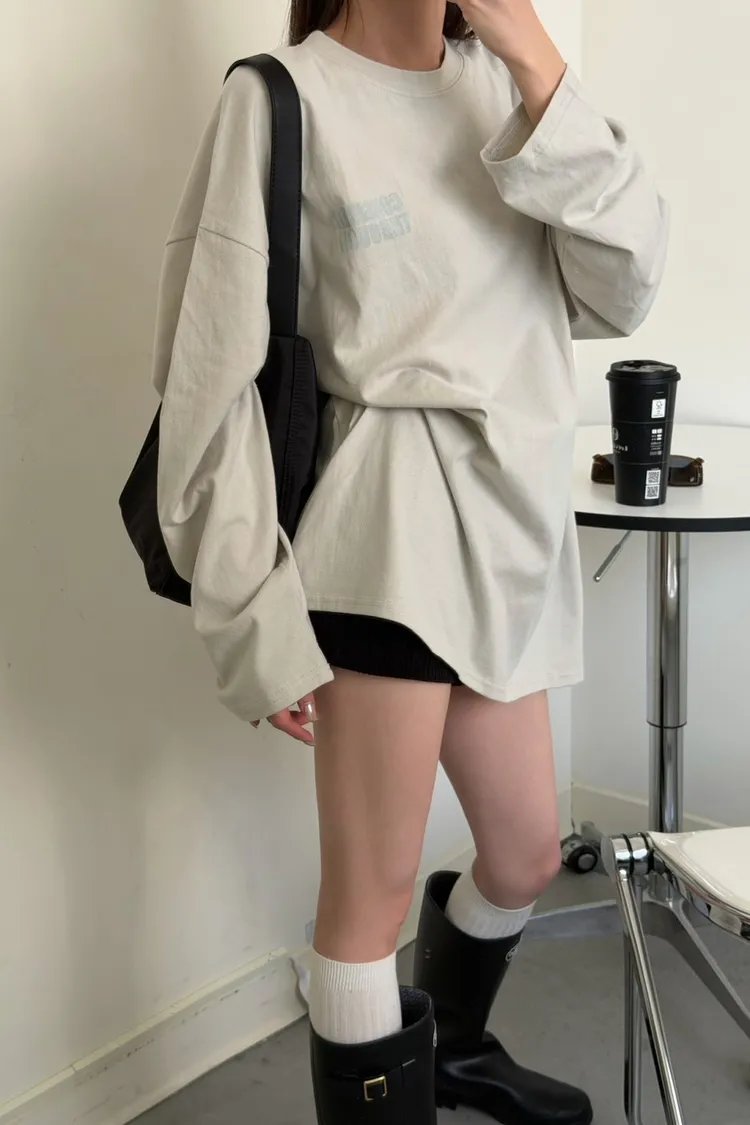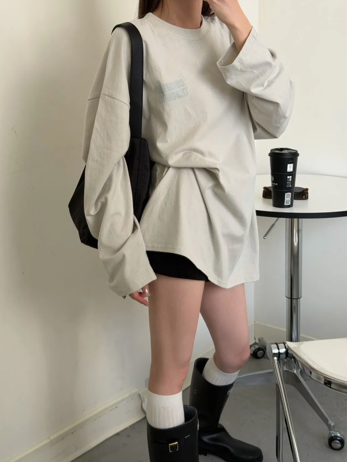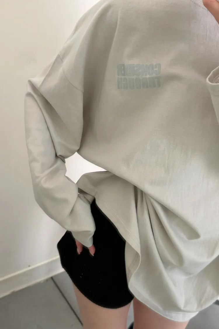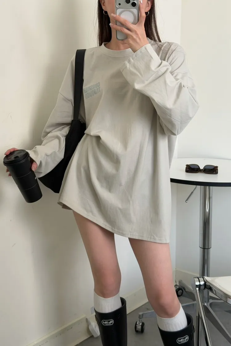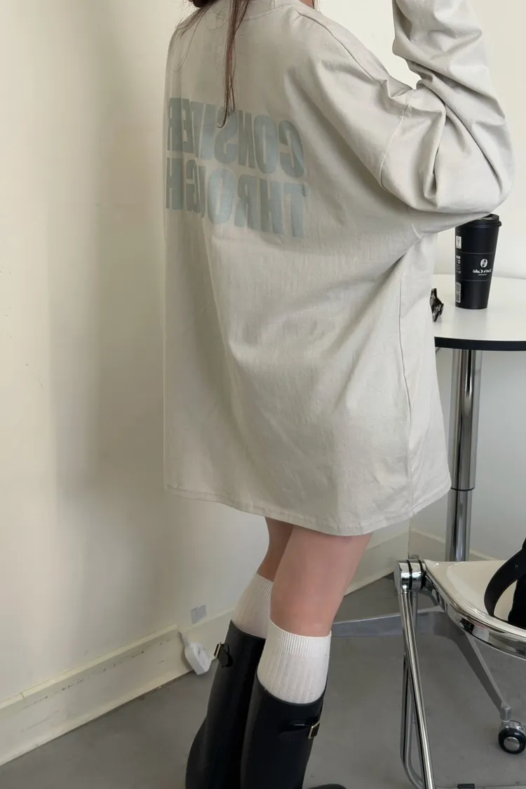KOREA 霧感奶灰色 寬鬆字母棉tee