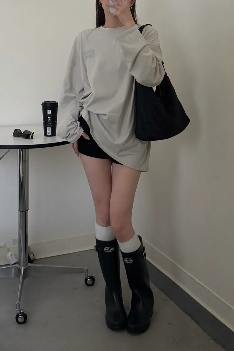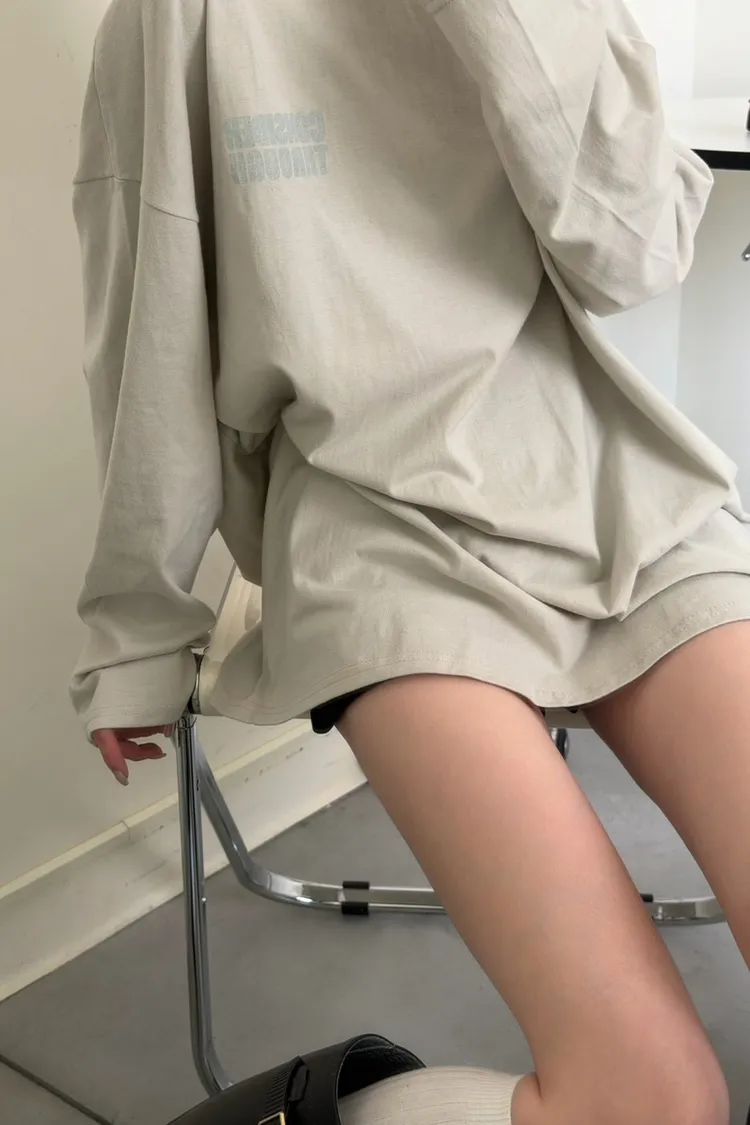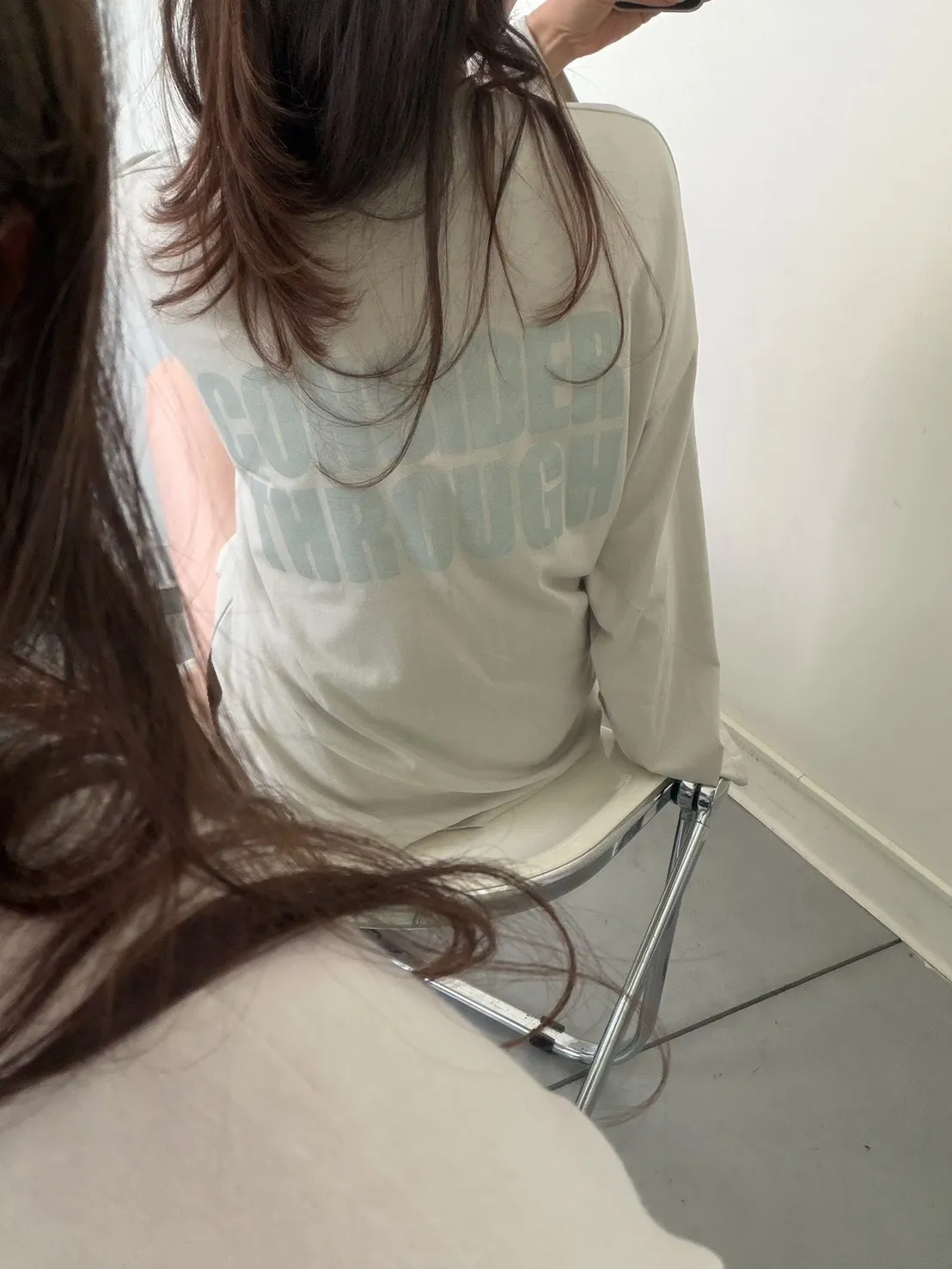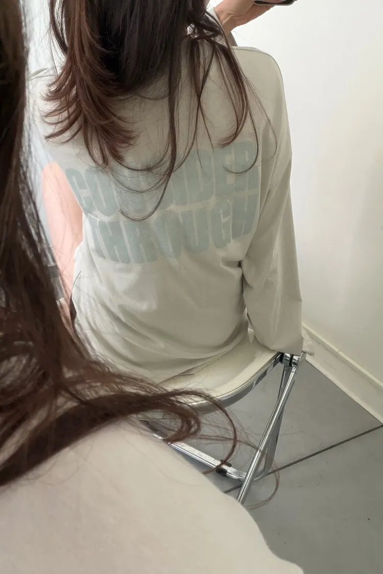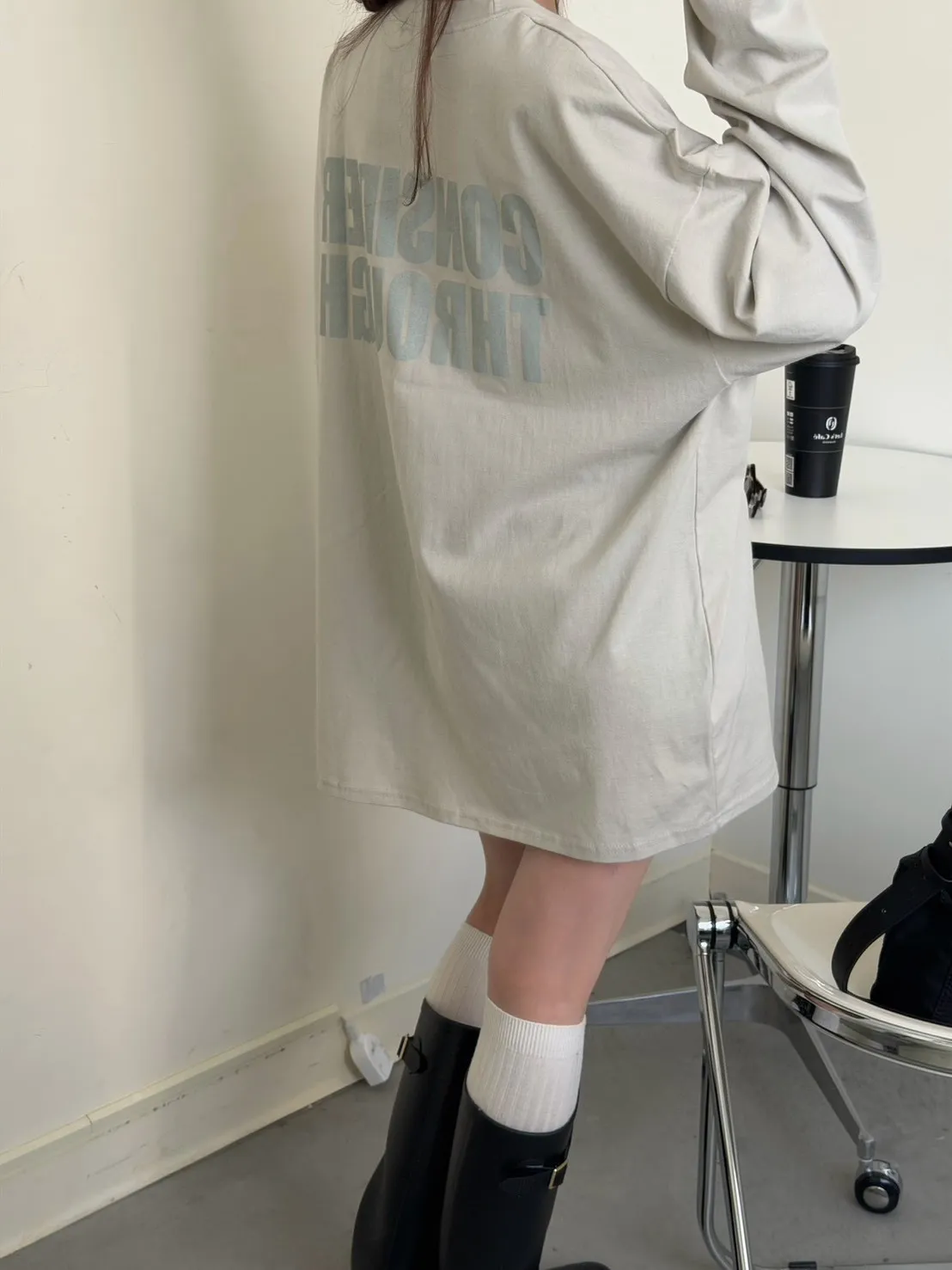 KOREA 霧感奶灰色 寬鬆字母棉tee