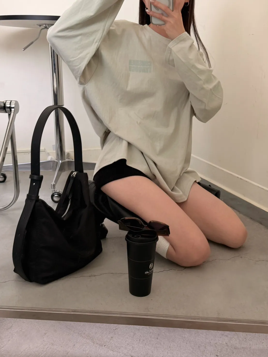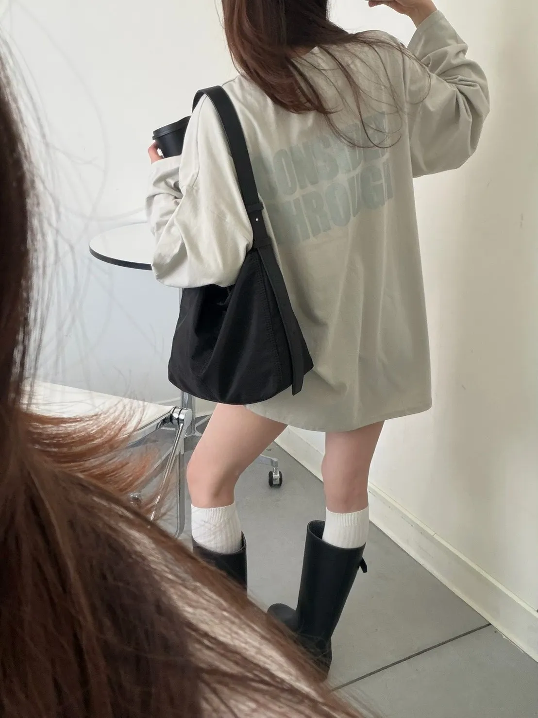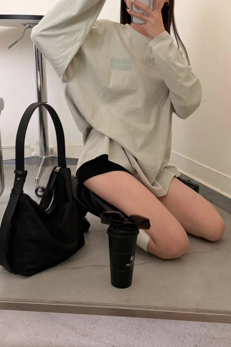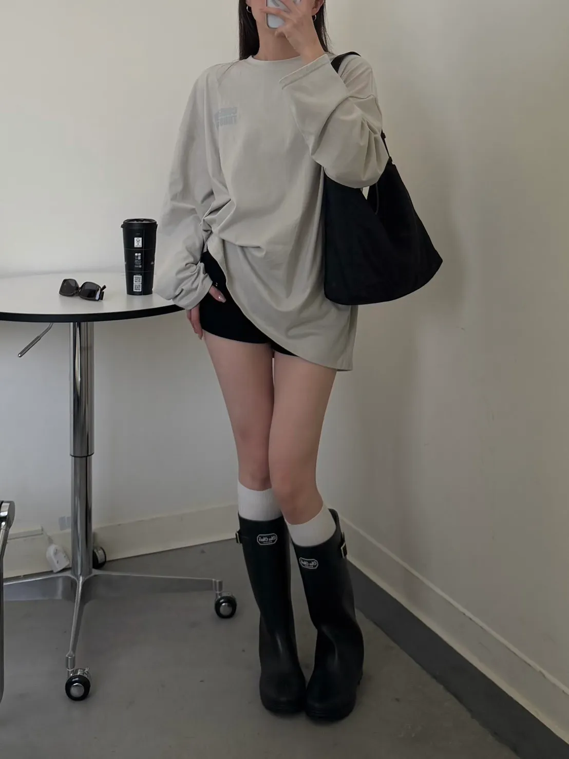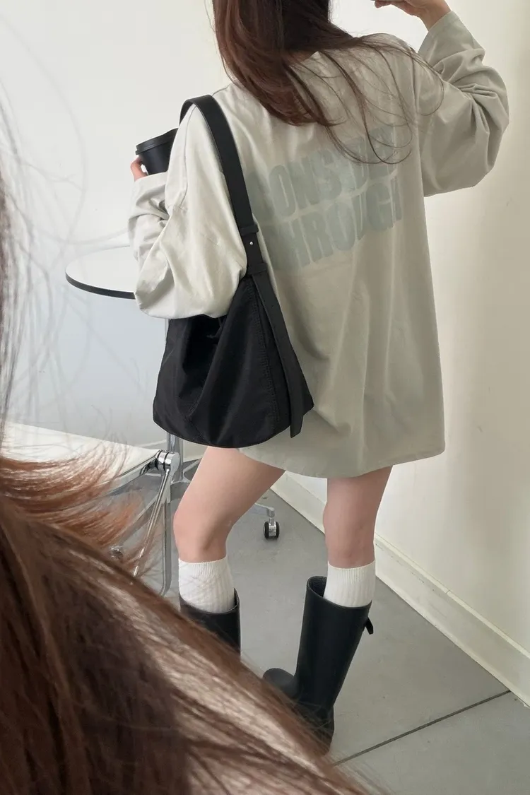 KOREA 霧感奶灰色 寬鬆字母棉tee