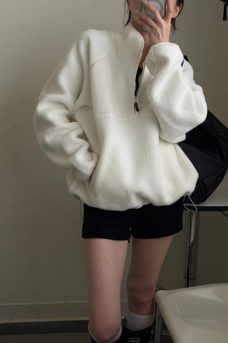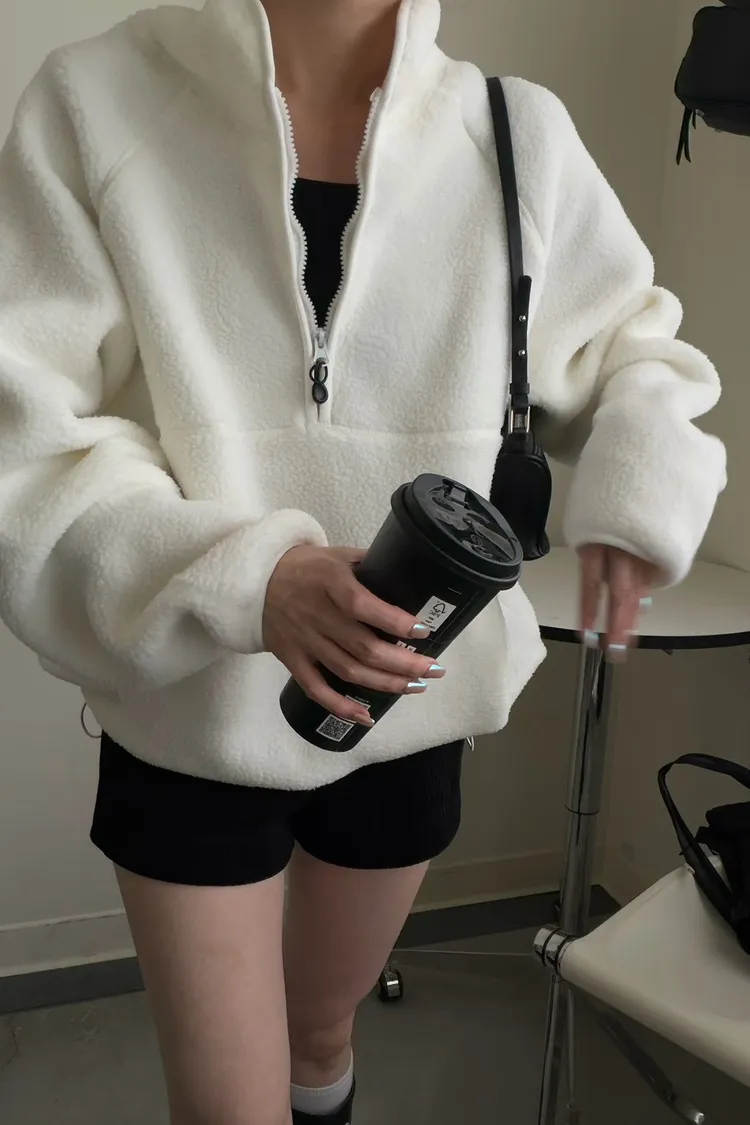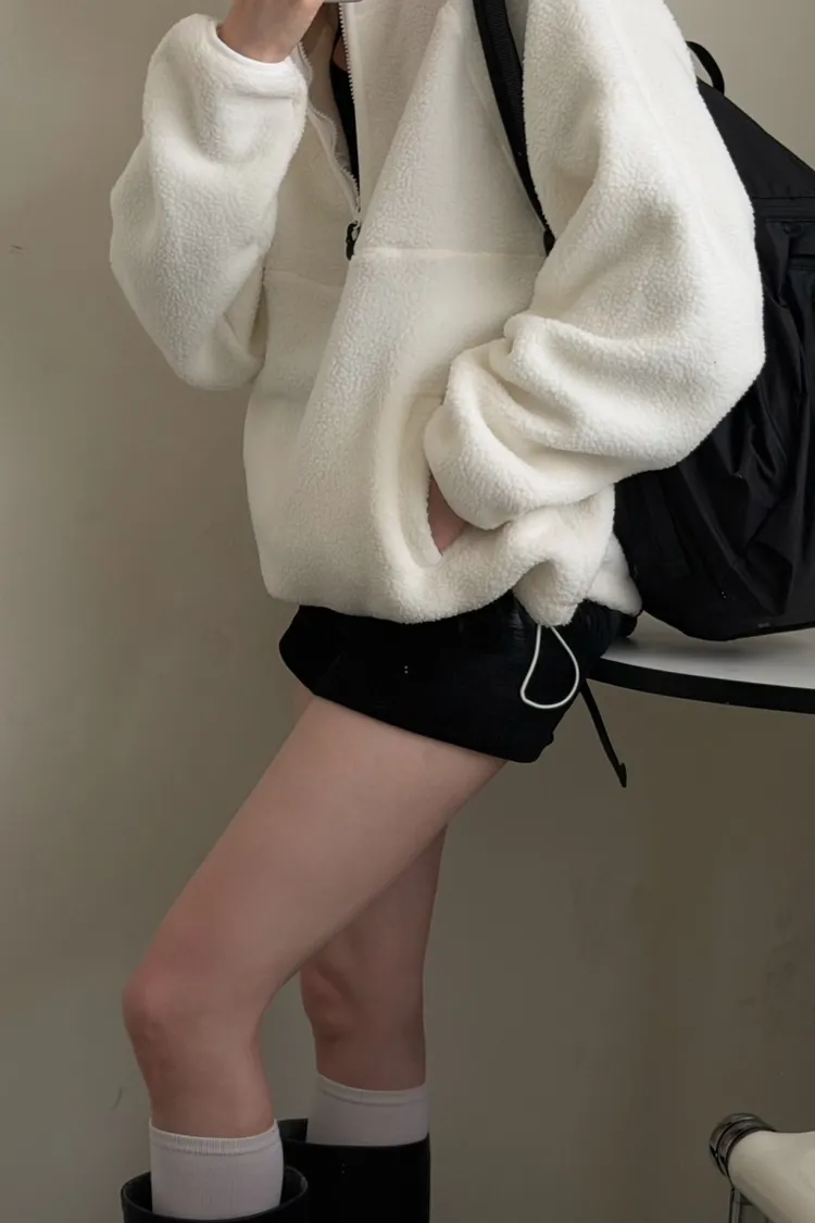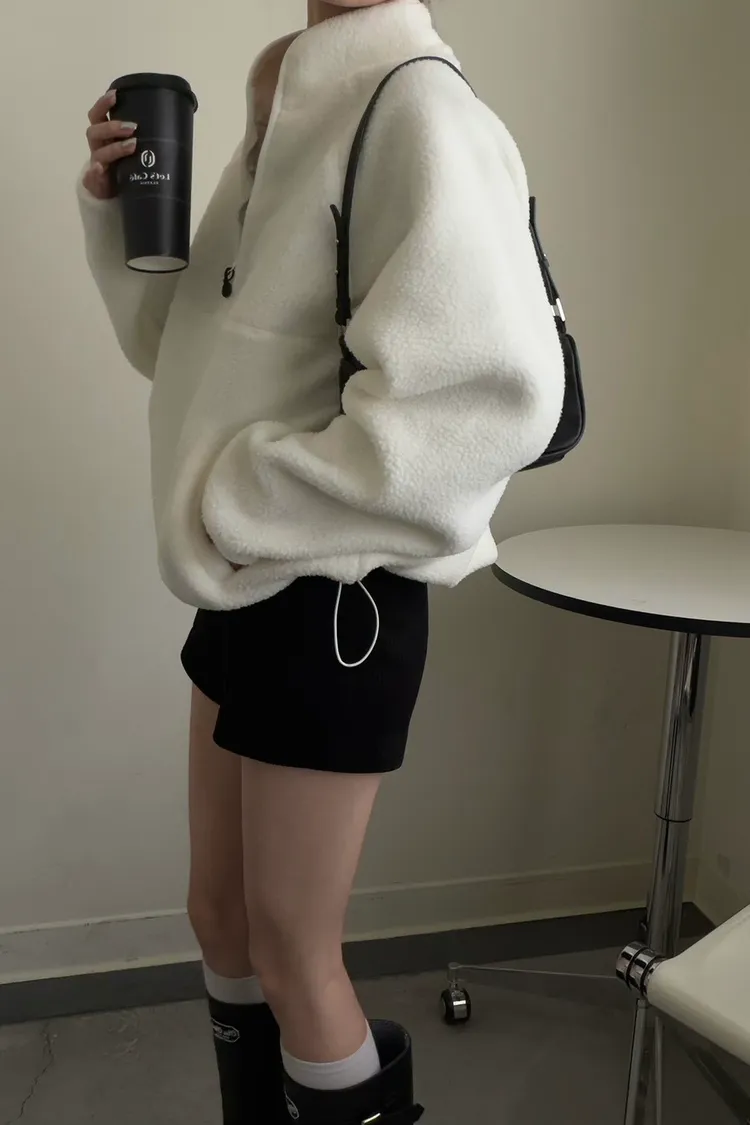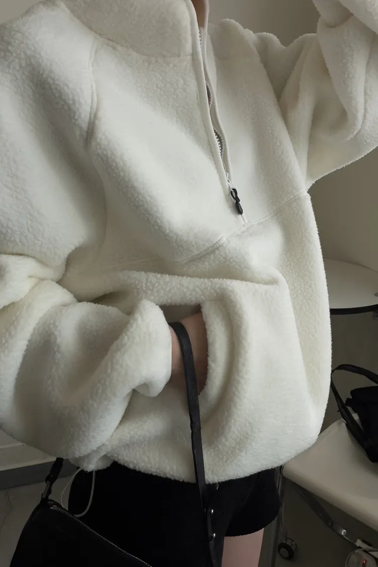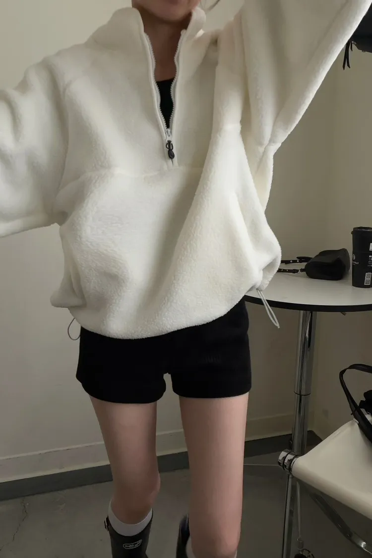 戀愛感白色 白滾邊熊寶寶軟綿上衣
