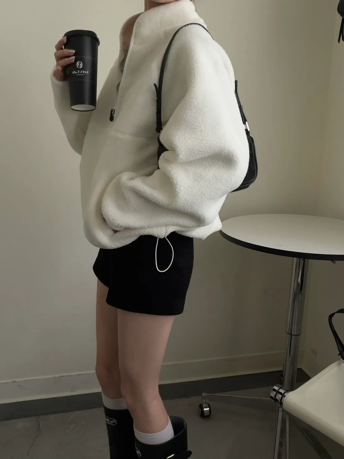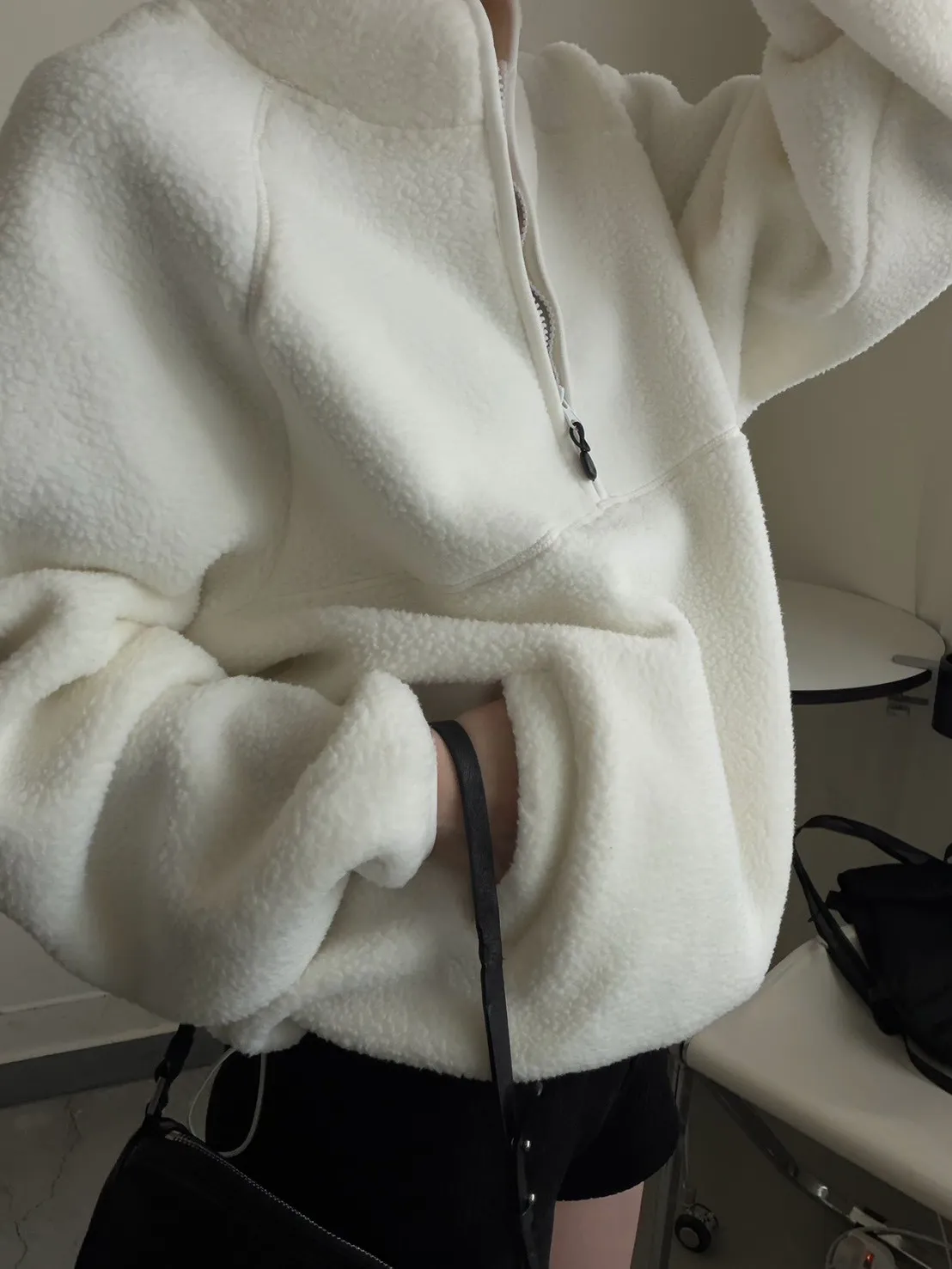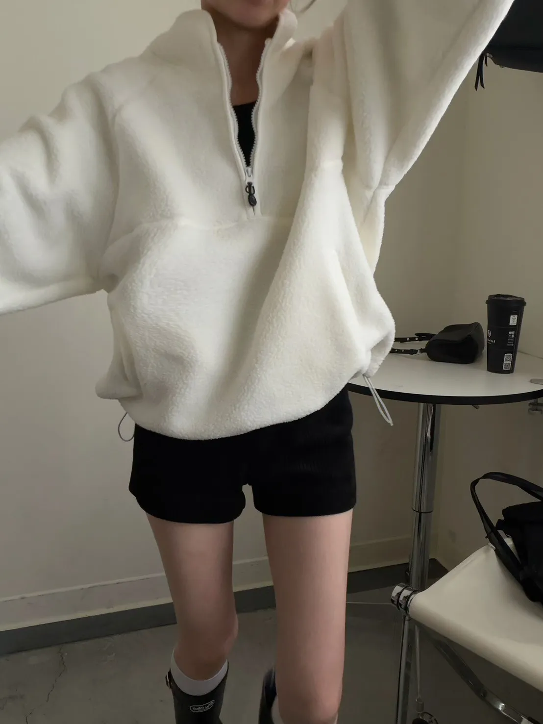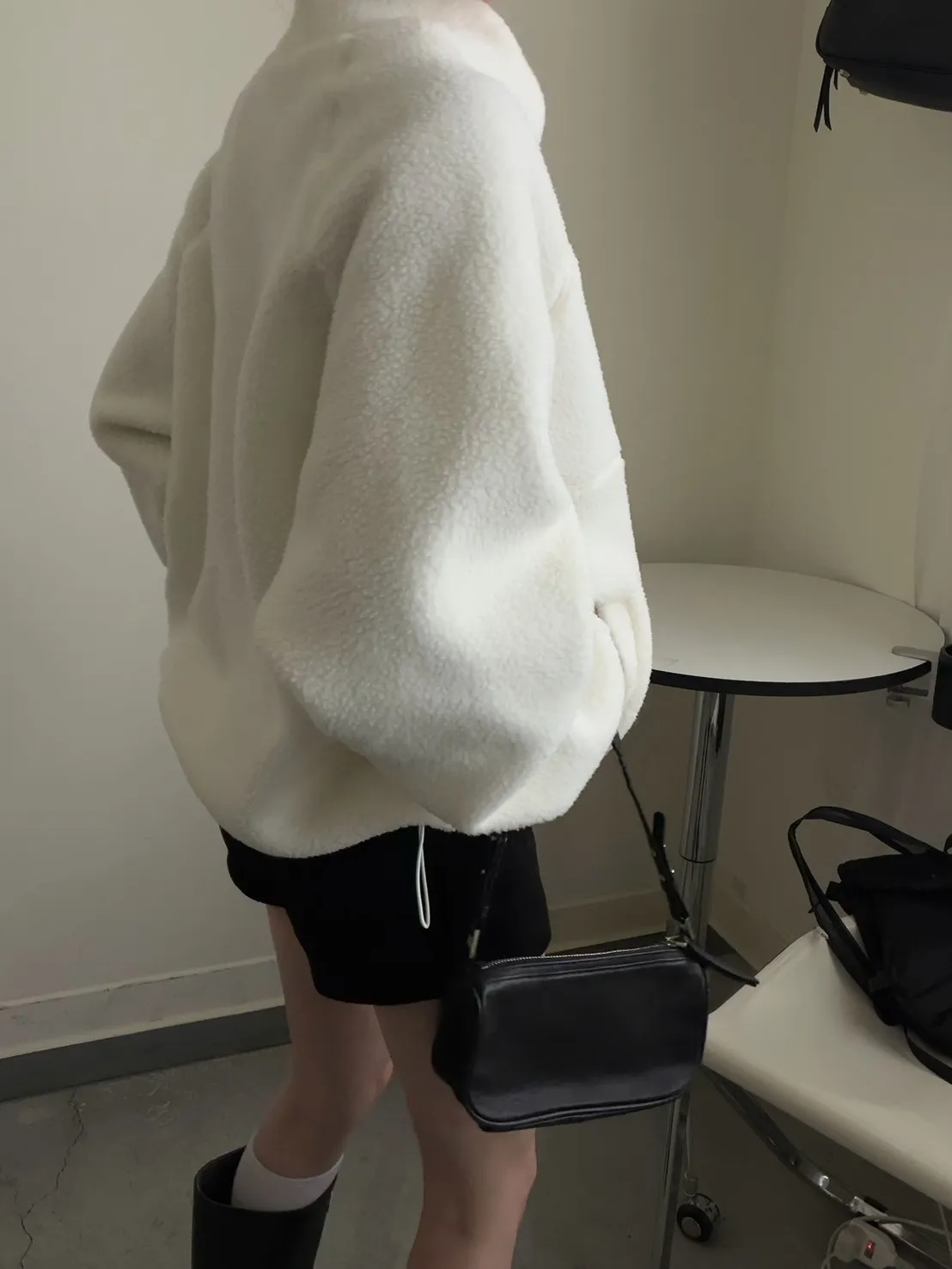 戀愛感白色 白滾邊熊寶寶軟綿上衣