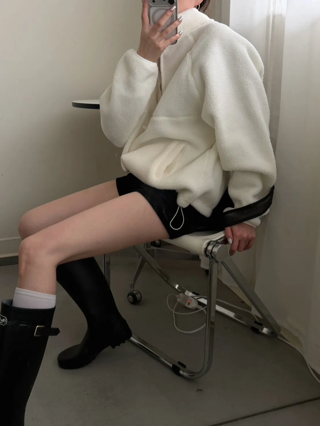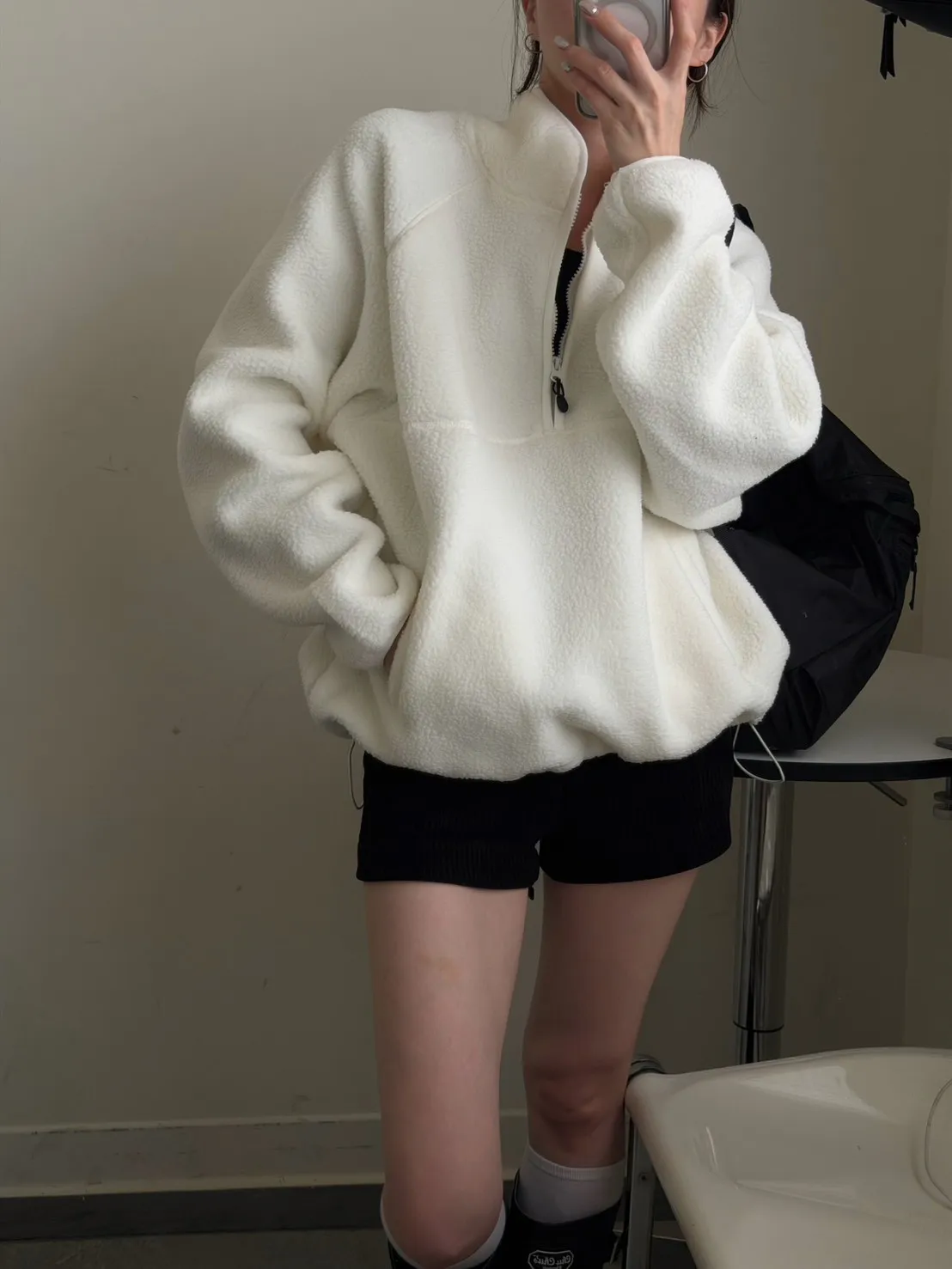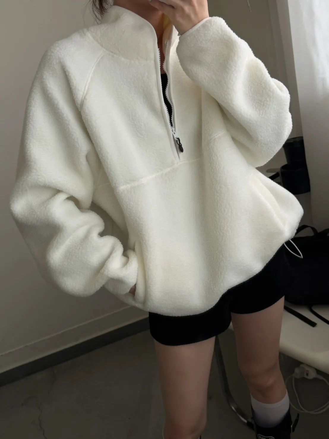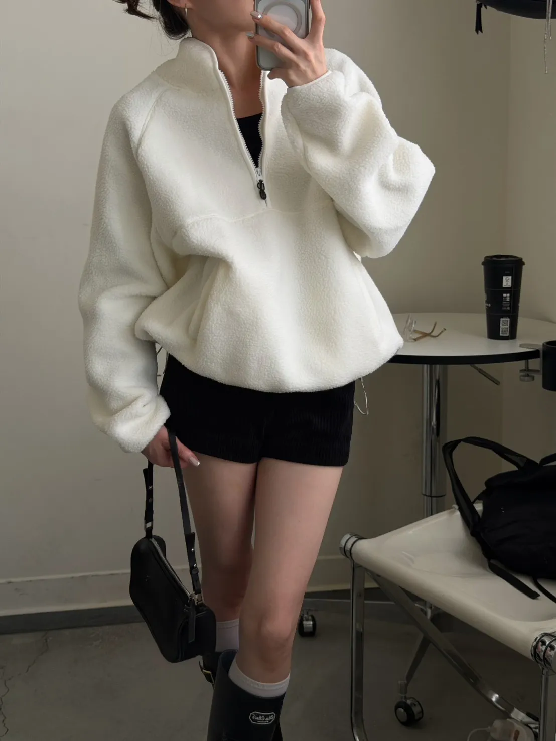 戀愛感白色 白滾邊熊寶寶軟綿上衣