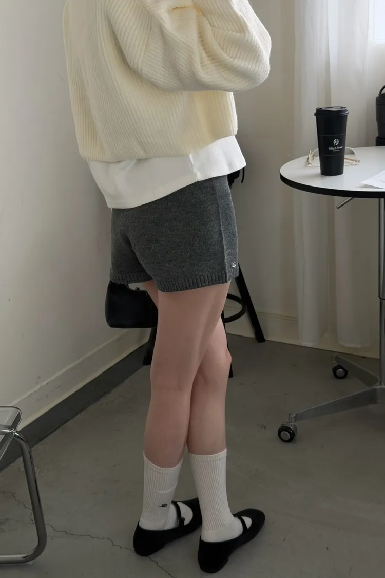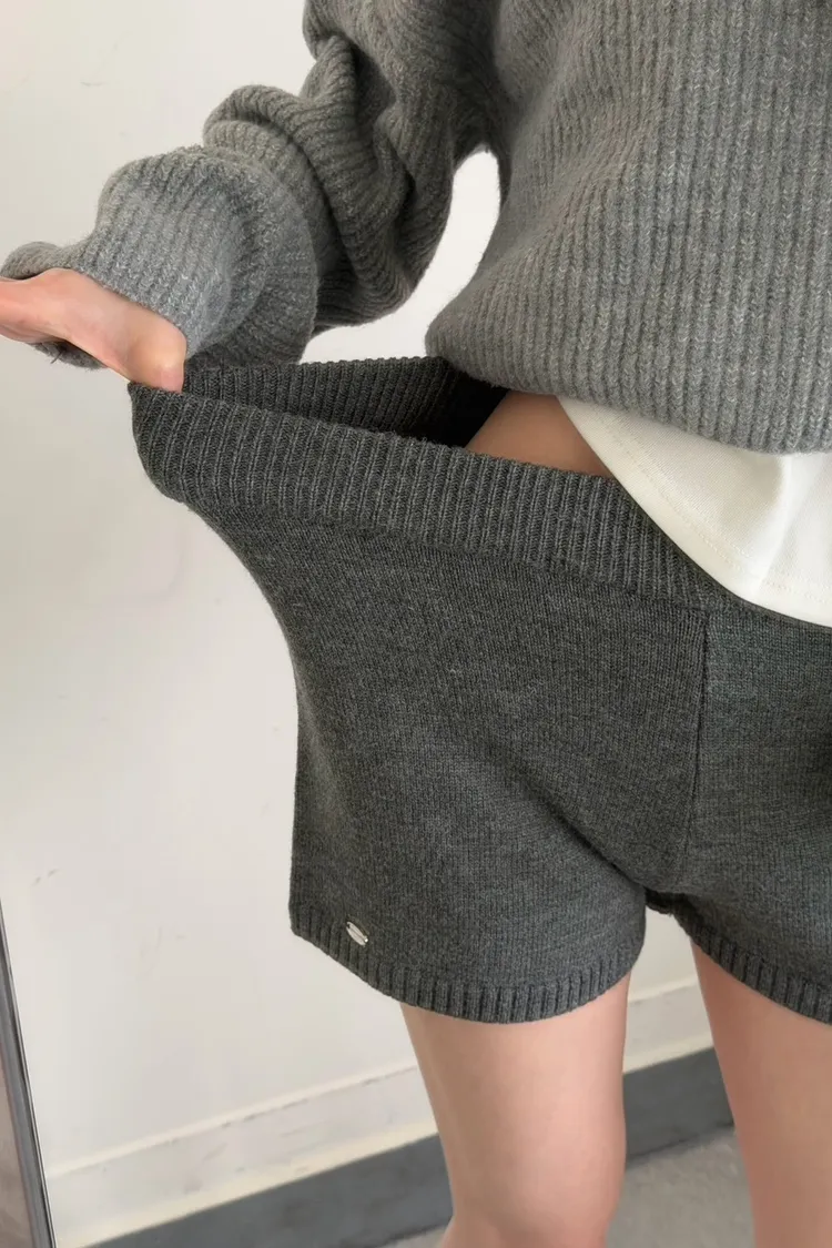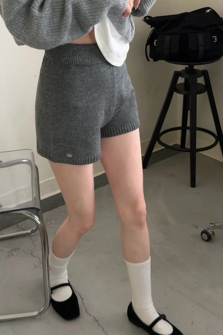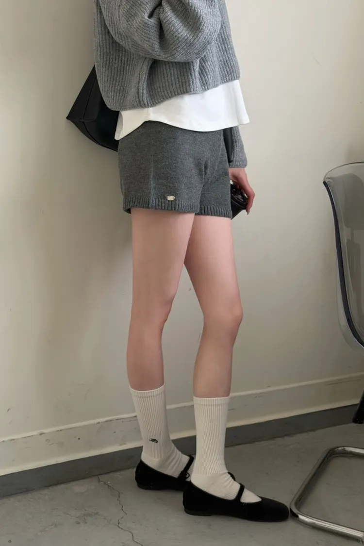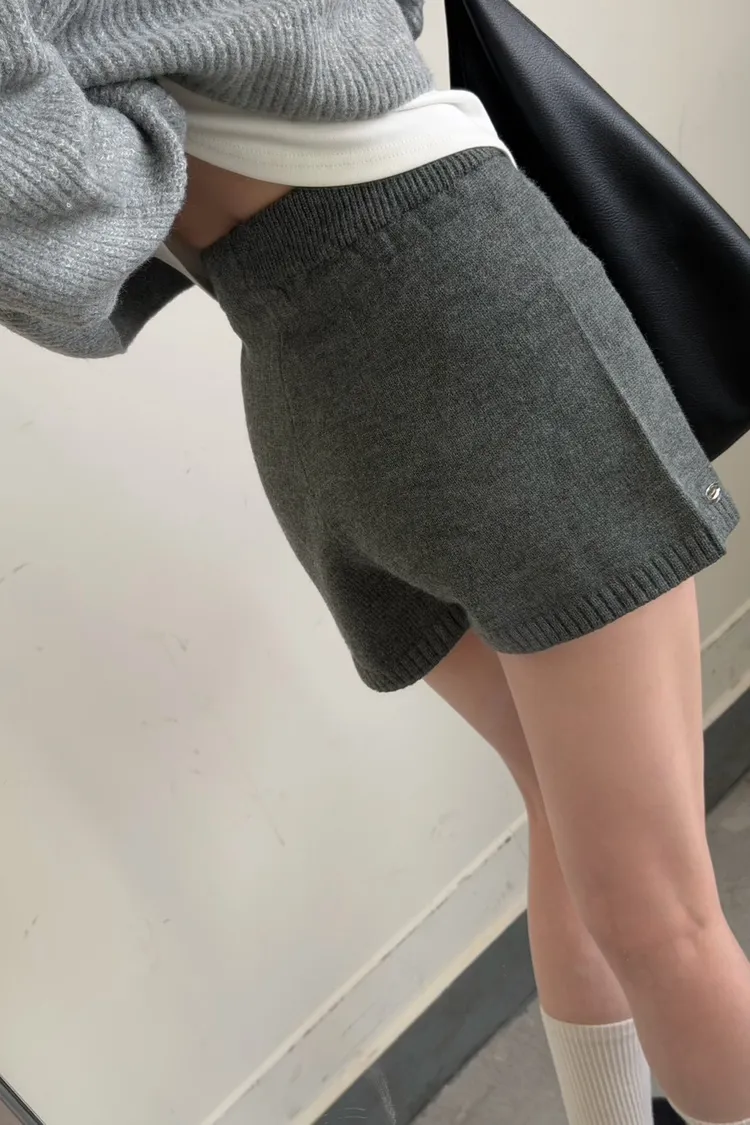 KOREA 灰色 必收!小金牌針織短褲