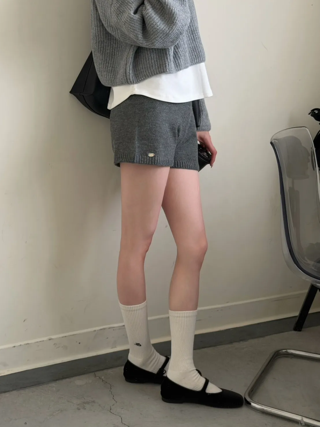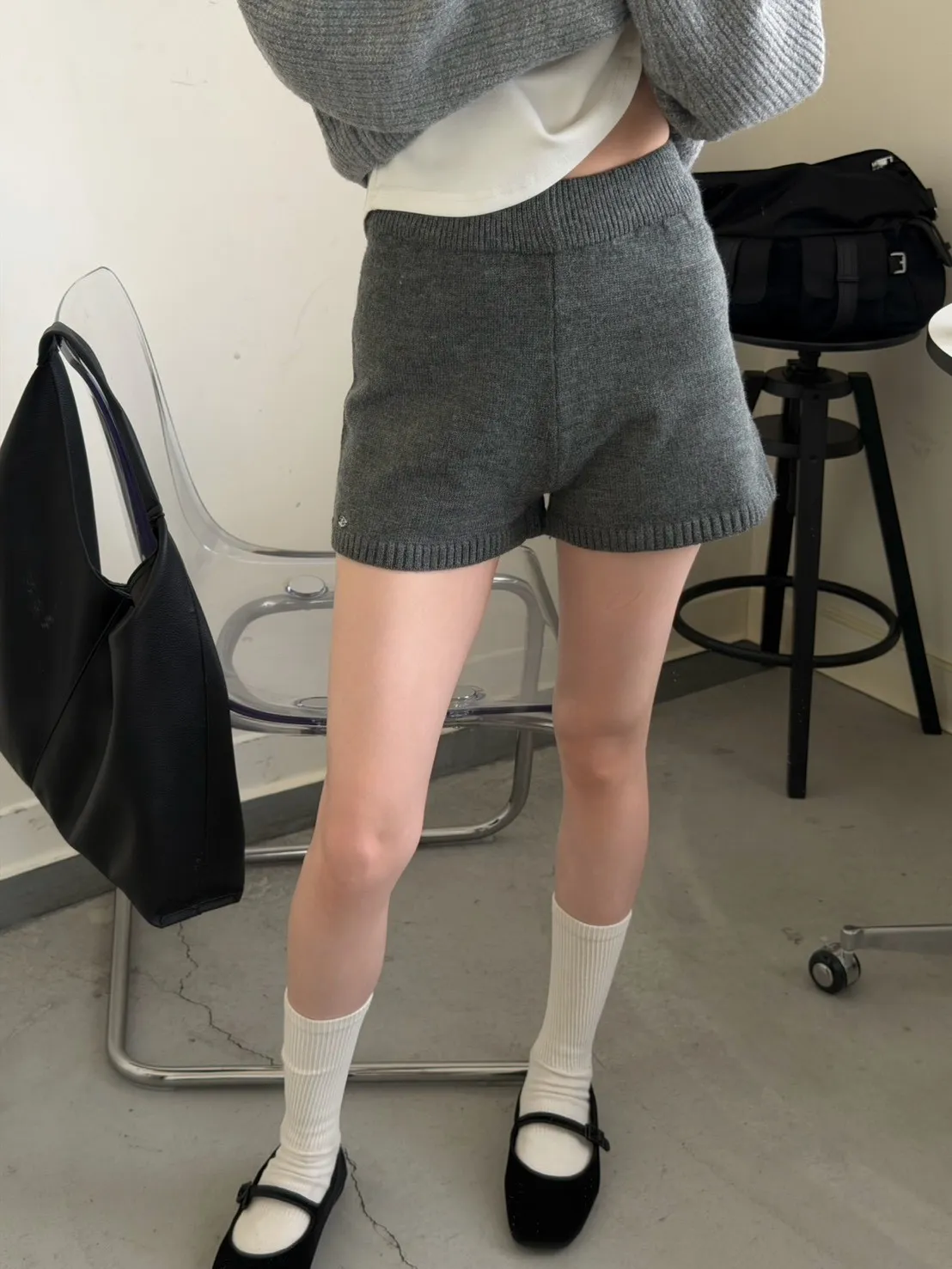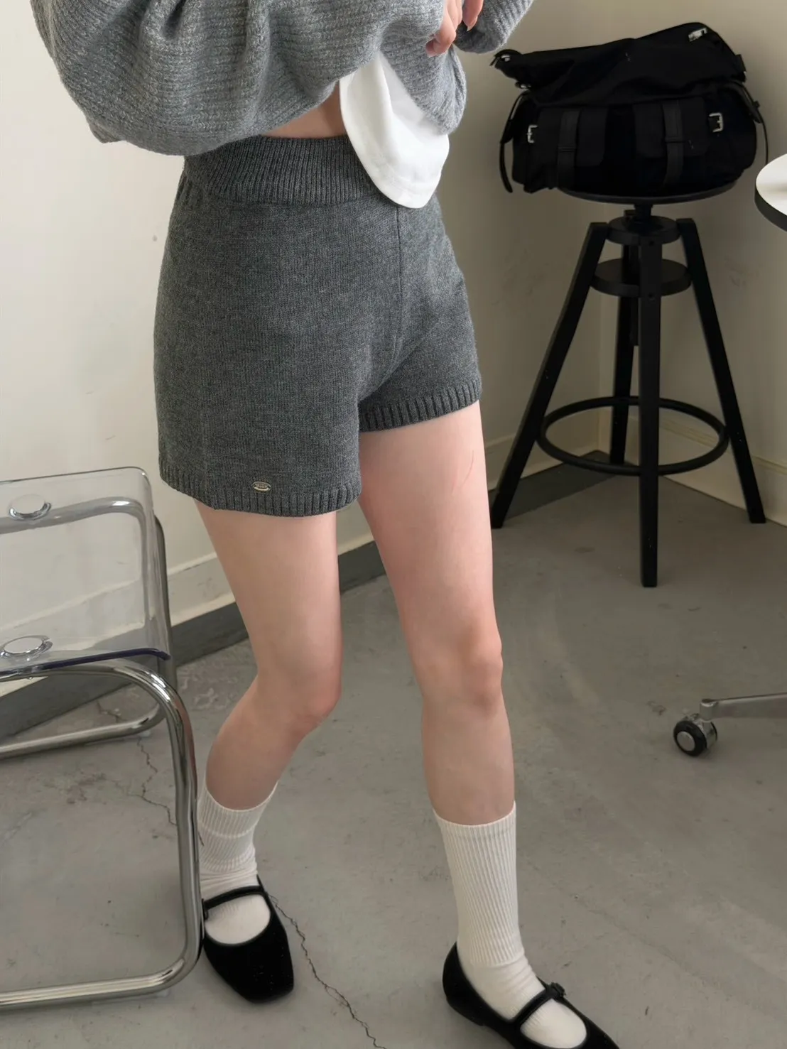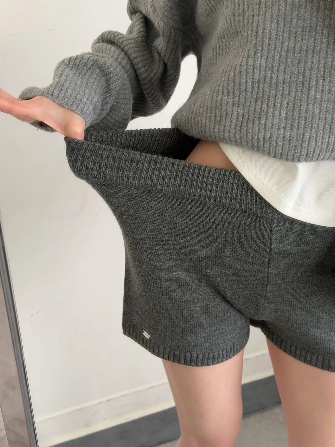 KOREA 灰色 必收!小金牌針織短褲