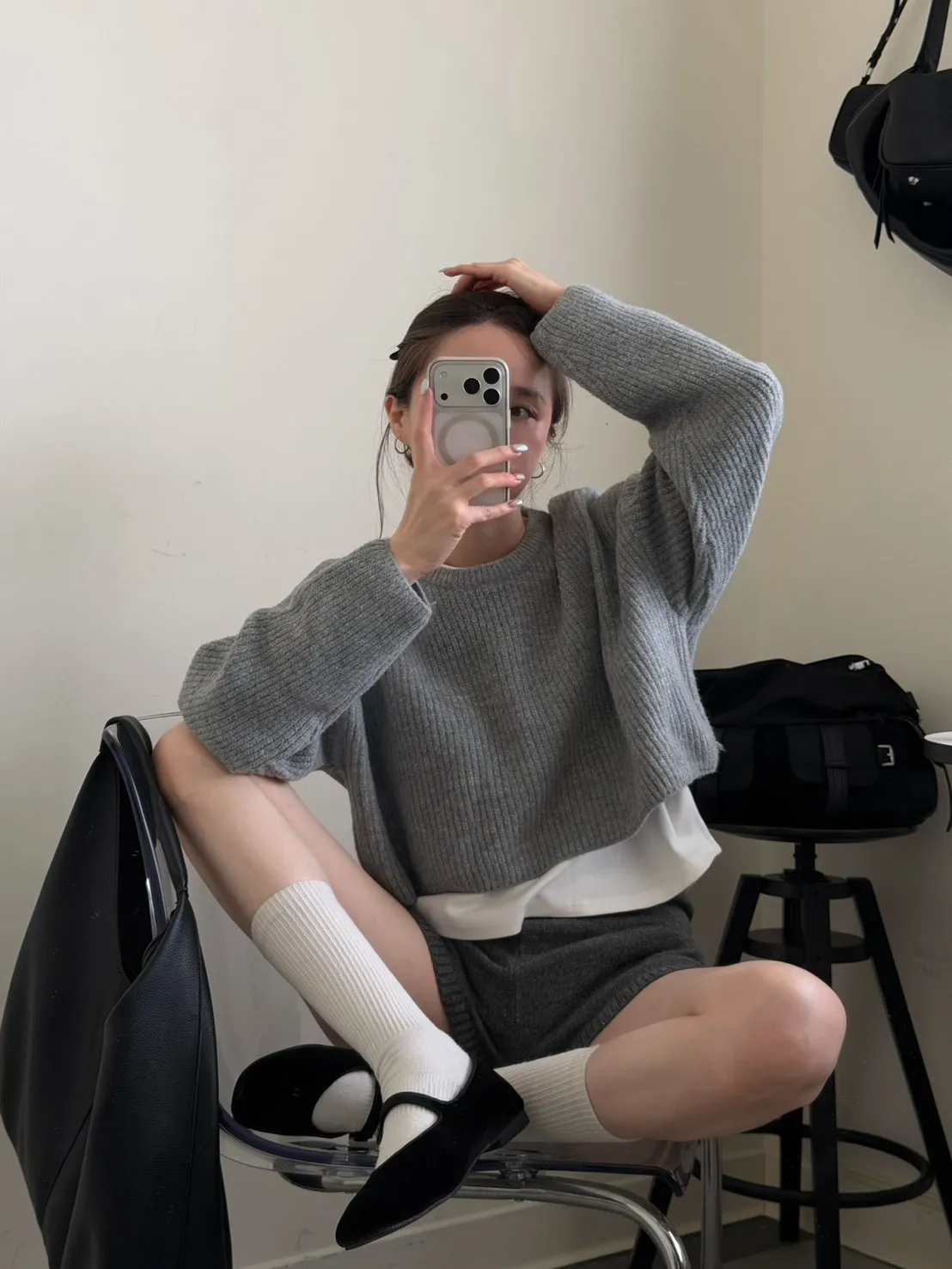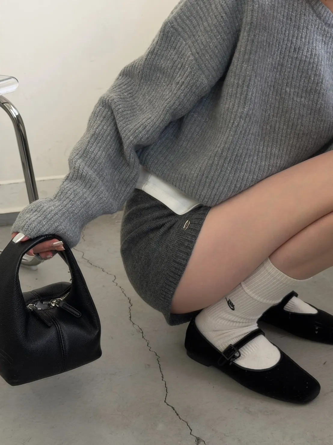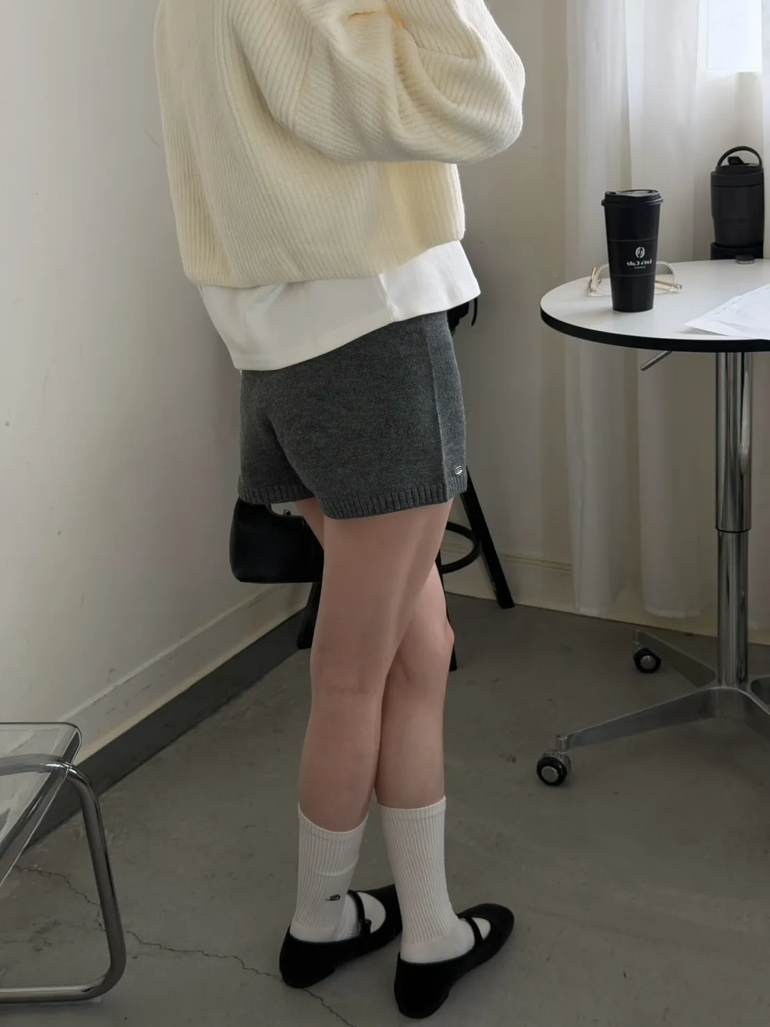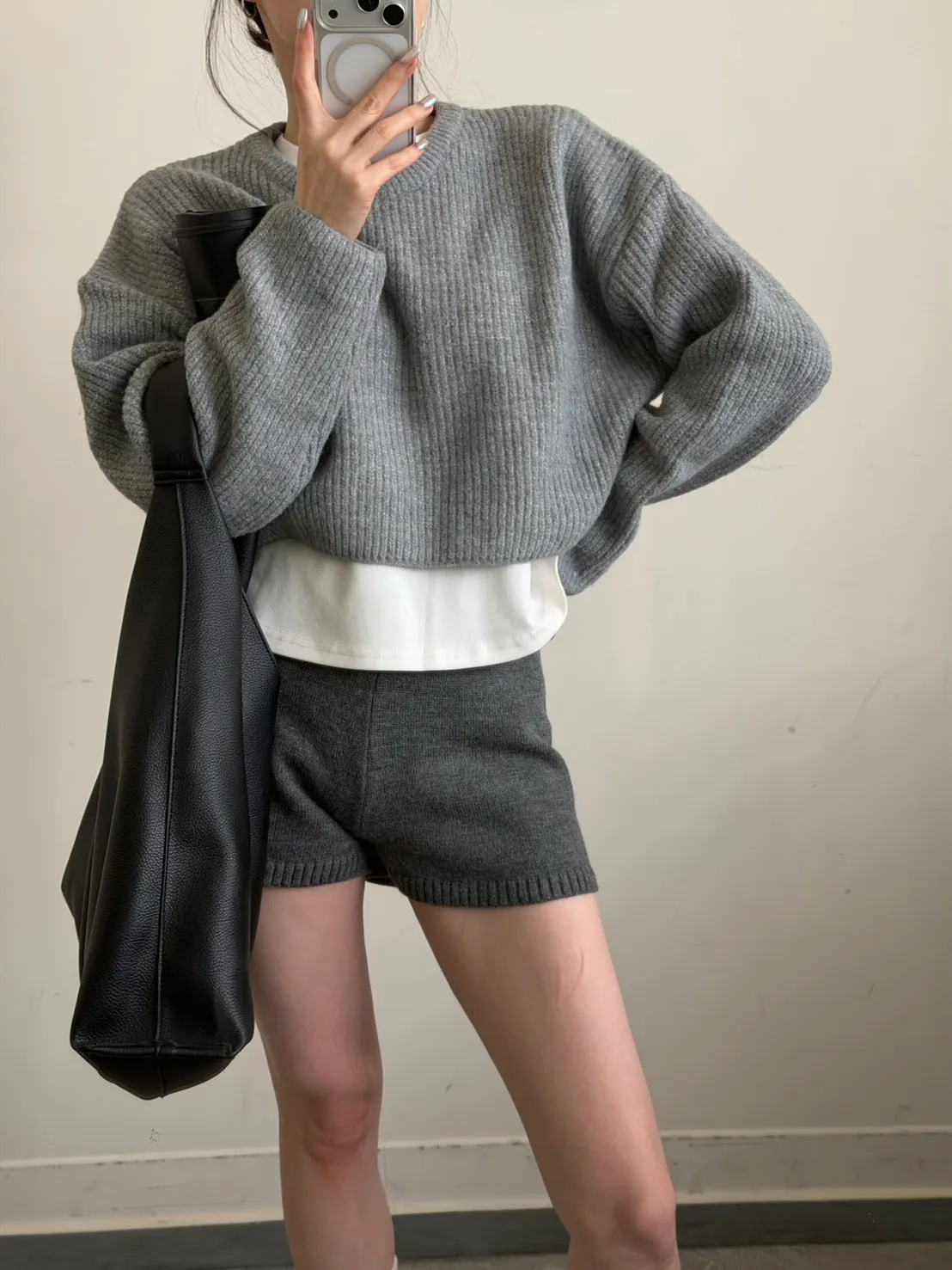 KOREA 灰色 必收!小金牌針織短褲