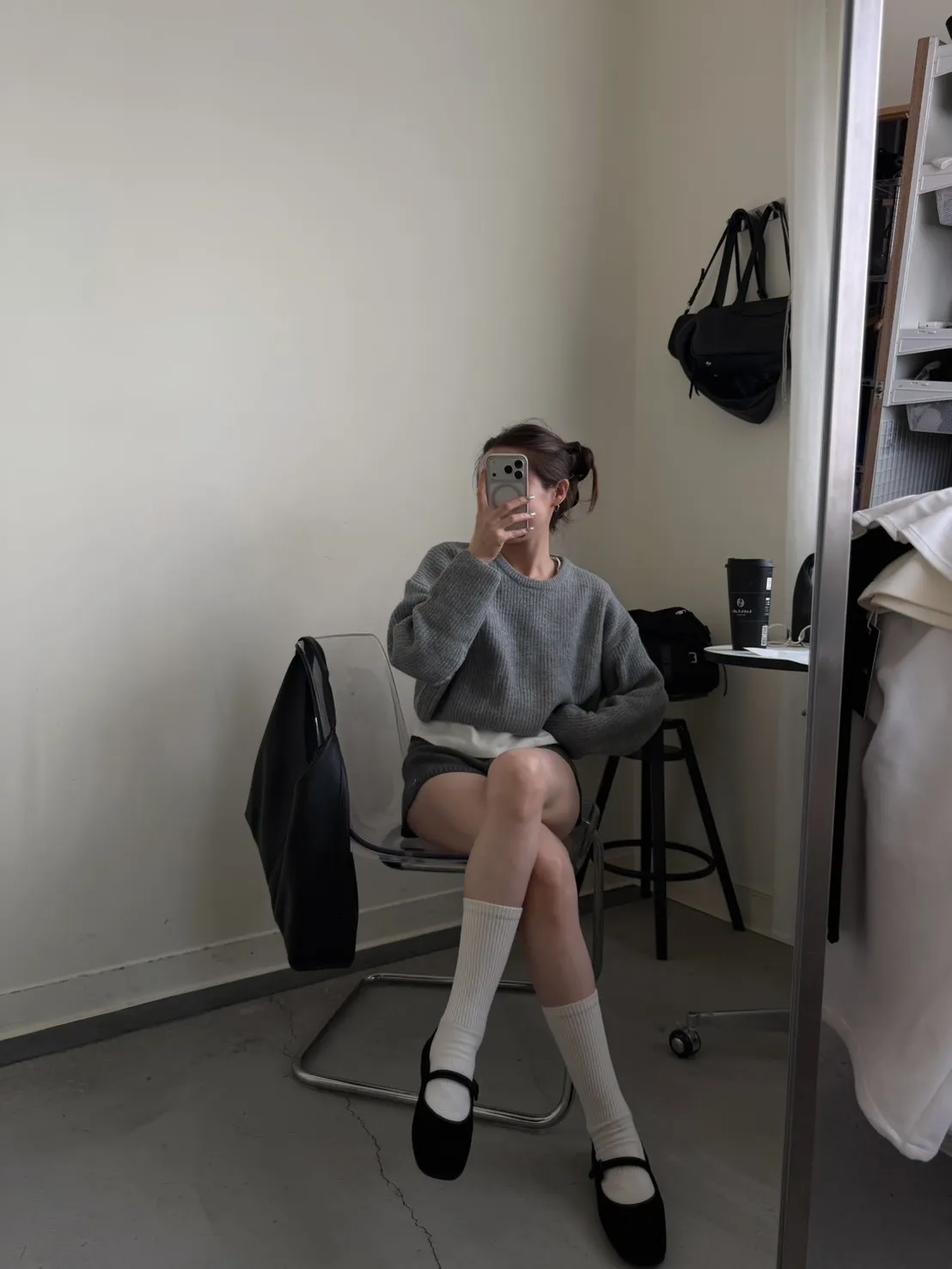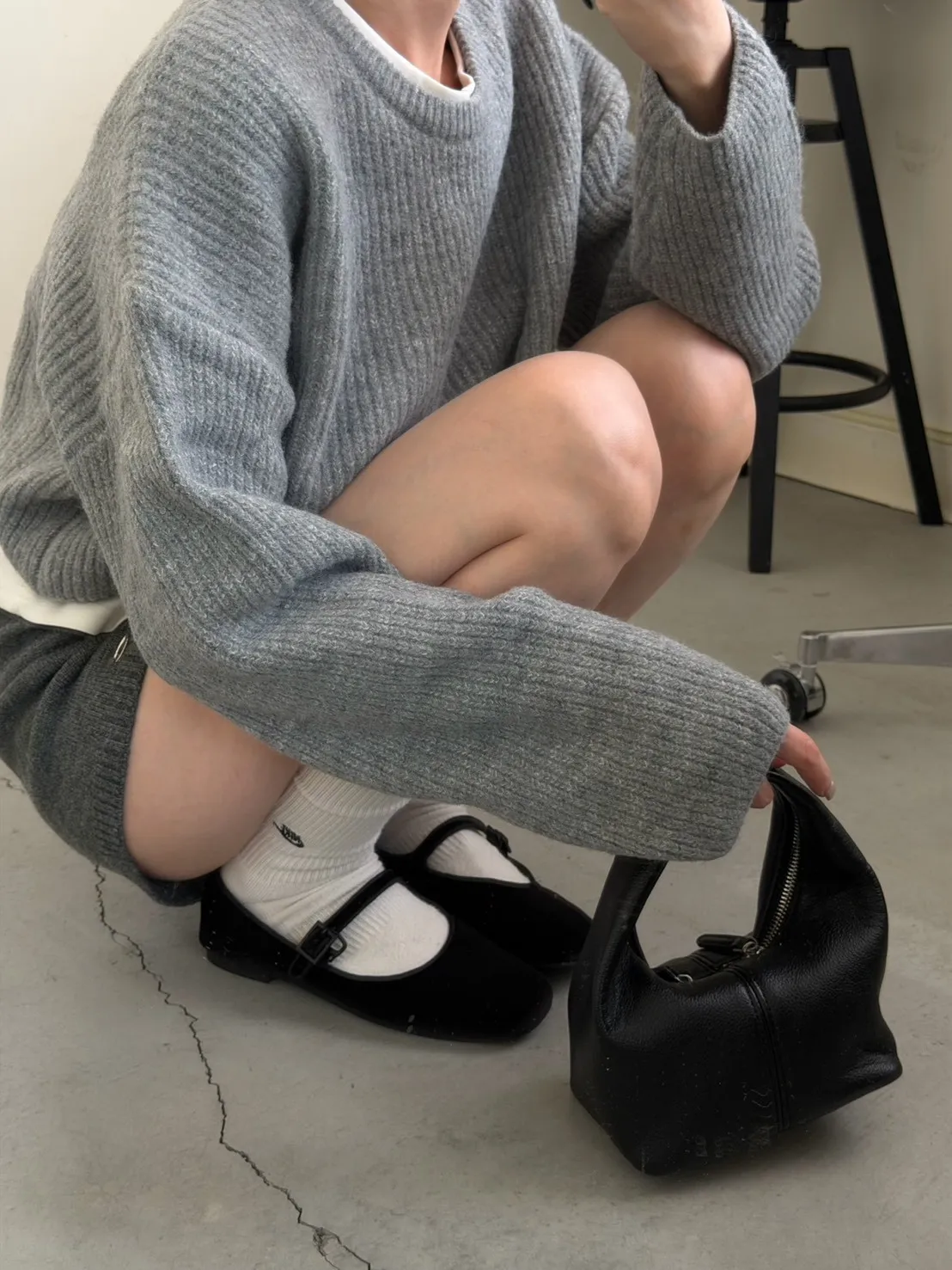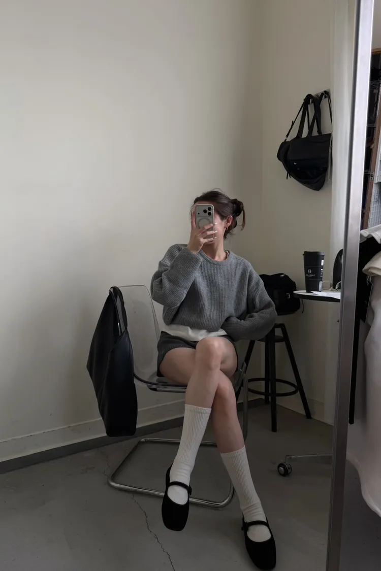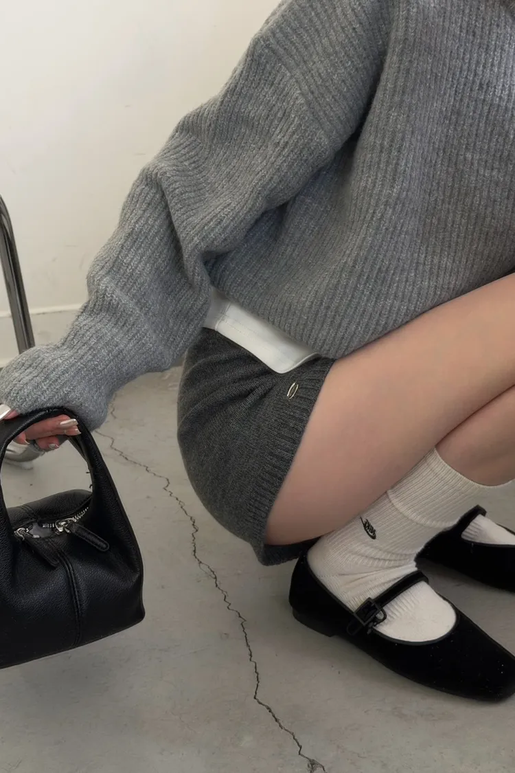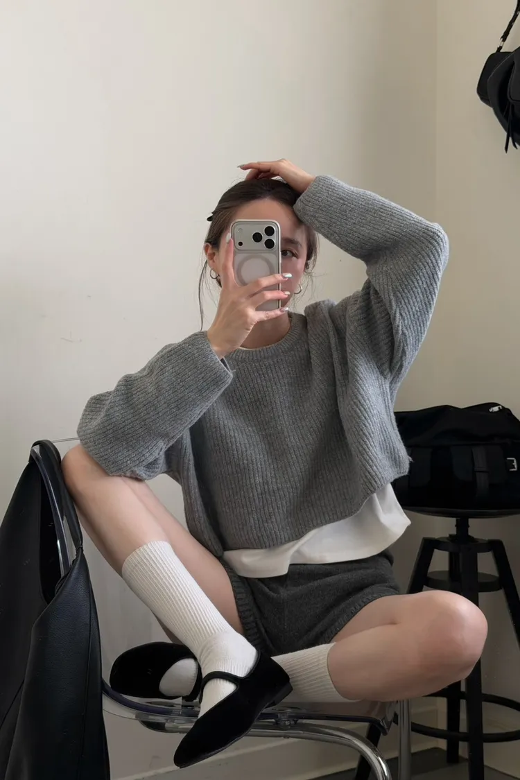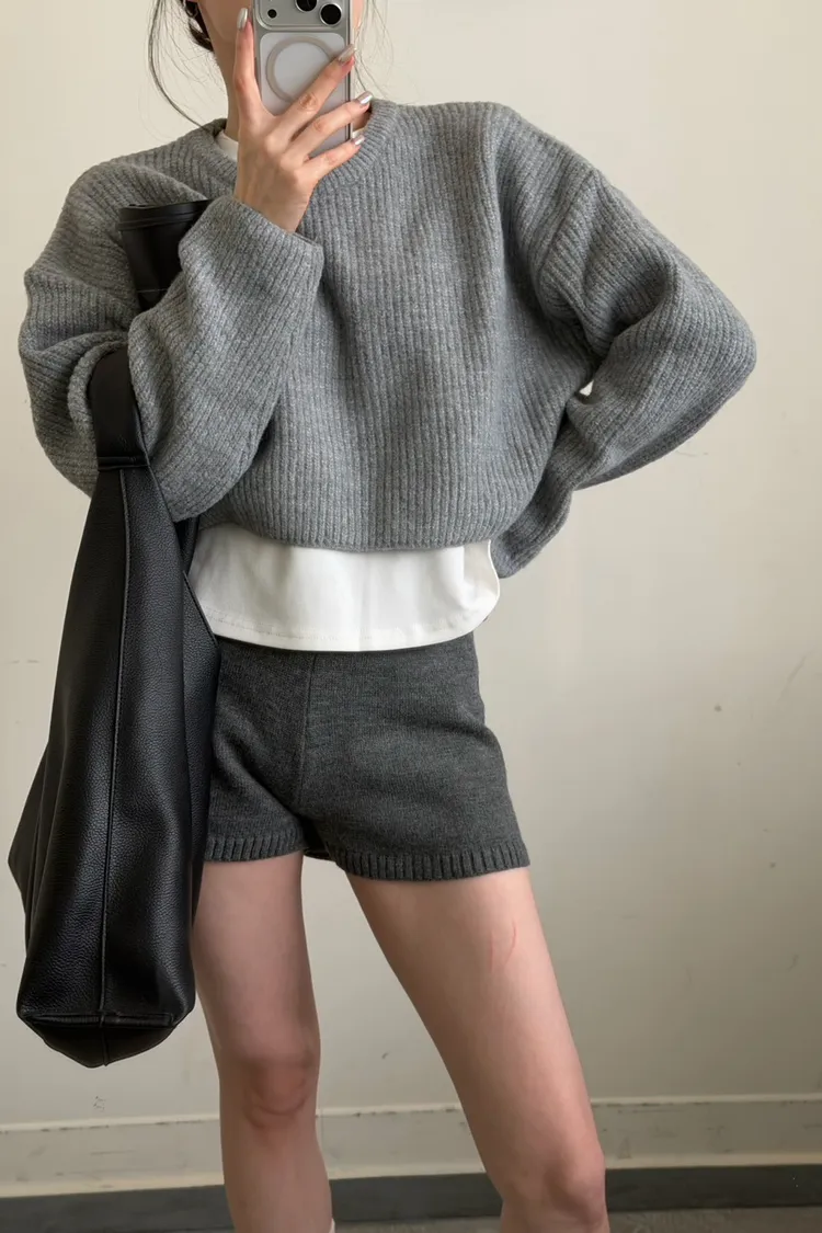 灰色 軟綿綿雲朵針織上衣