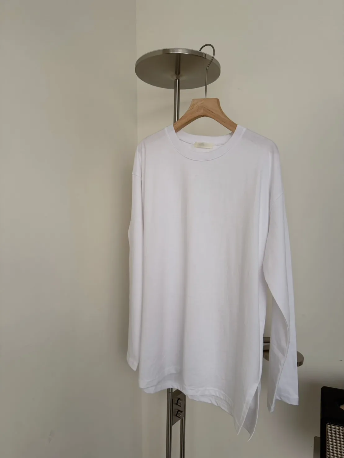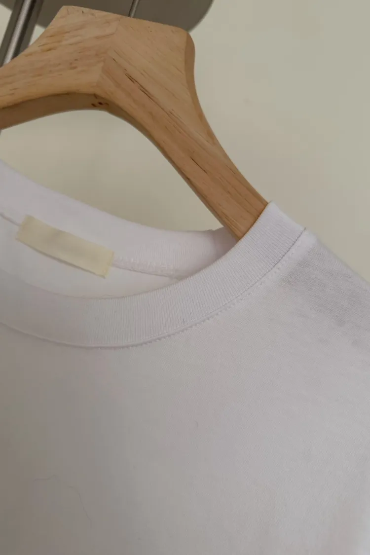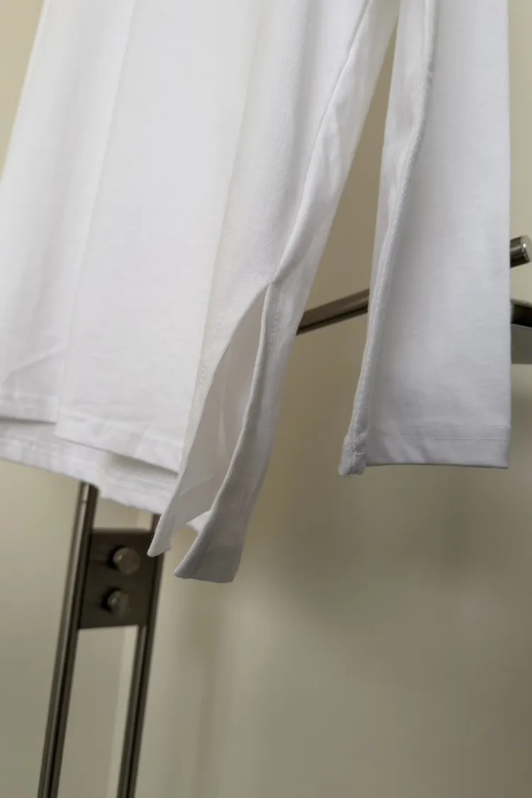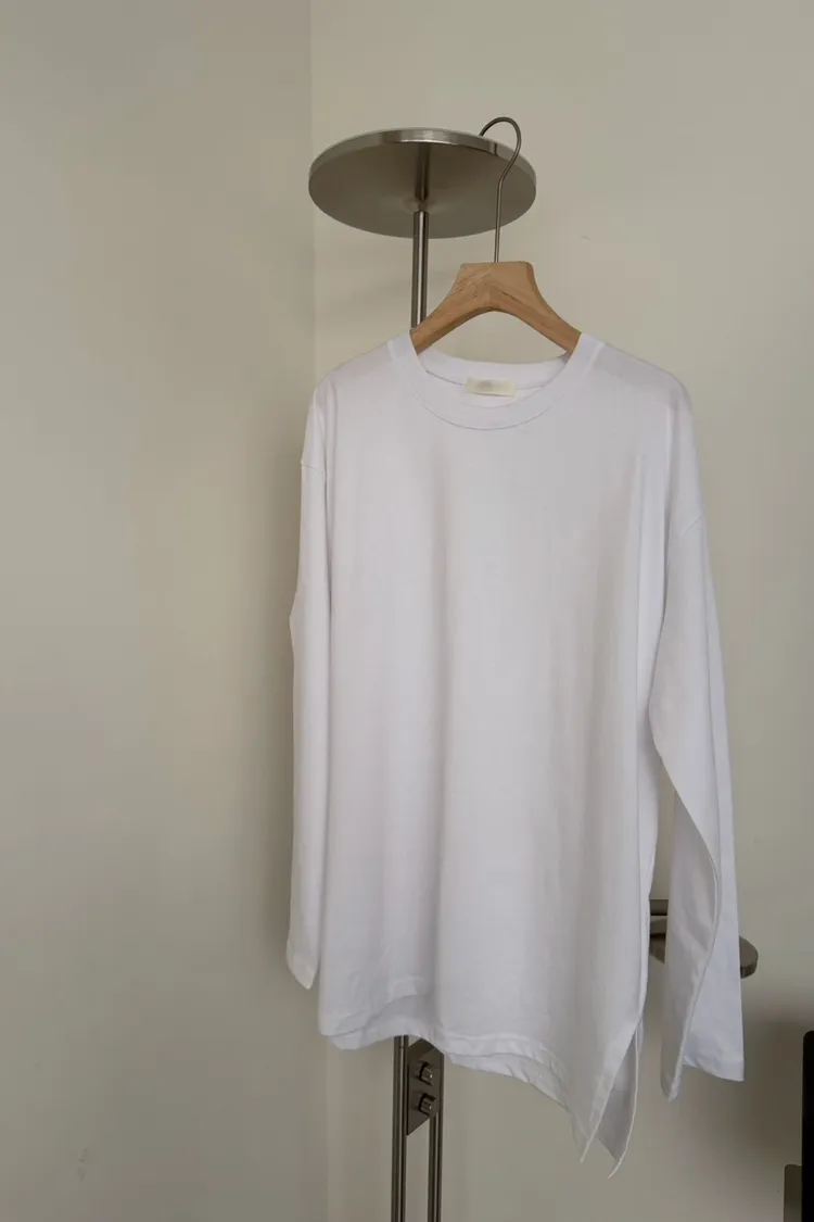 KOREA 白色 經典百搭側開岔棉tee