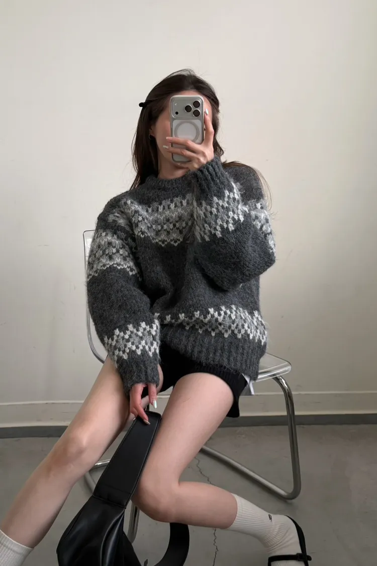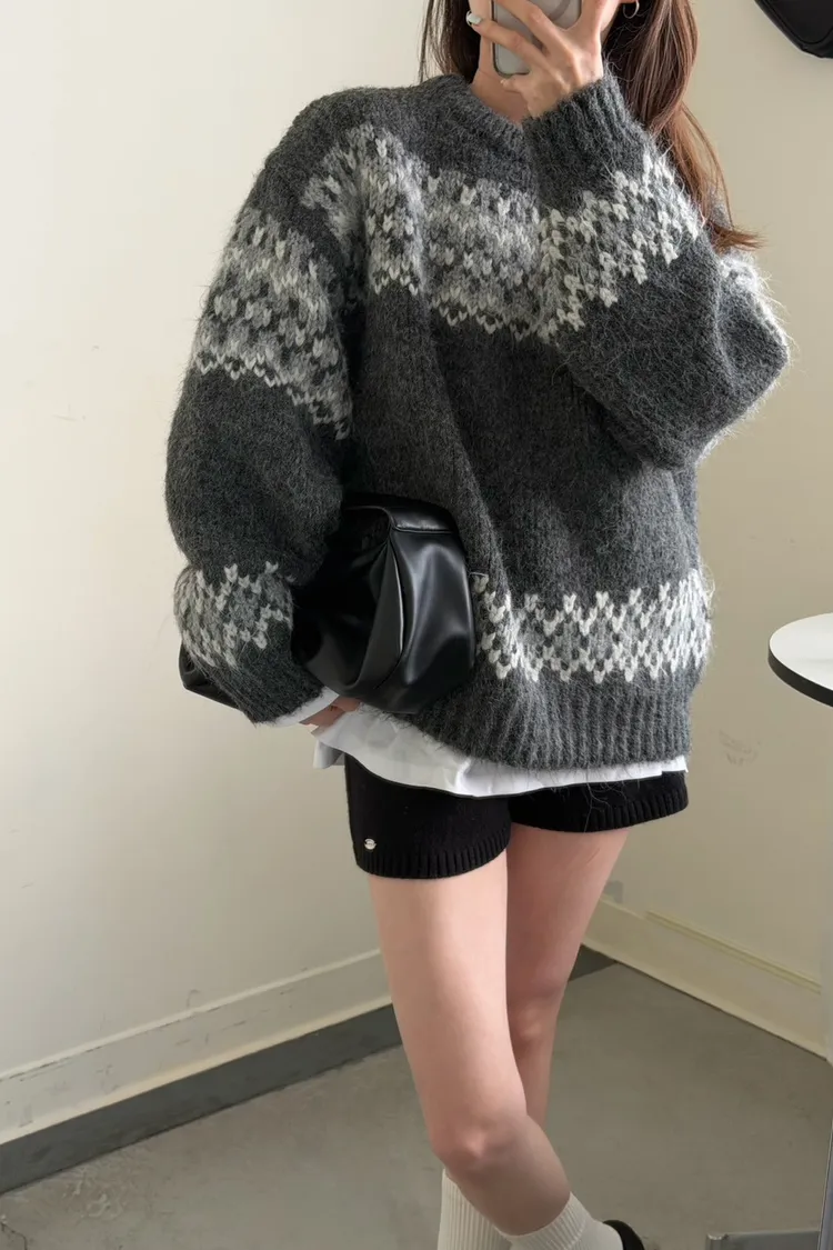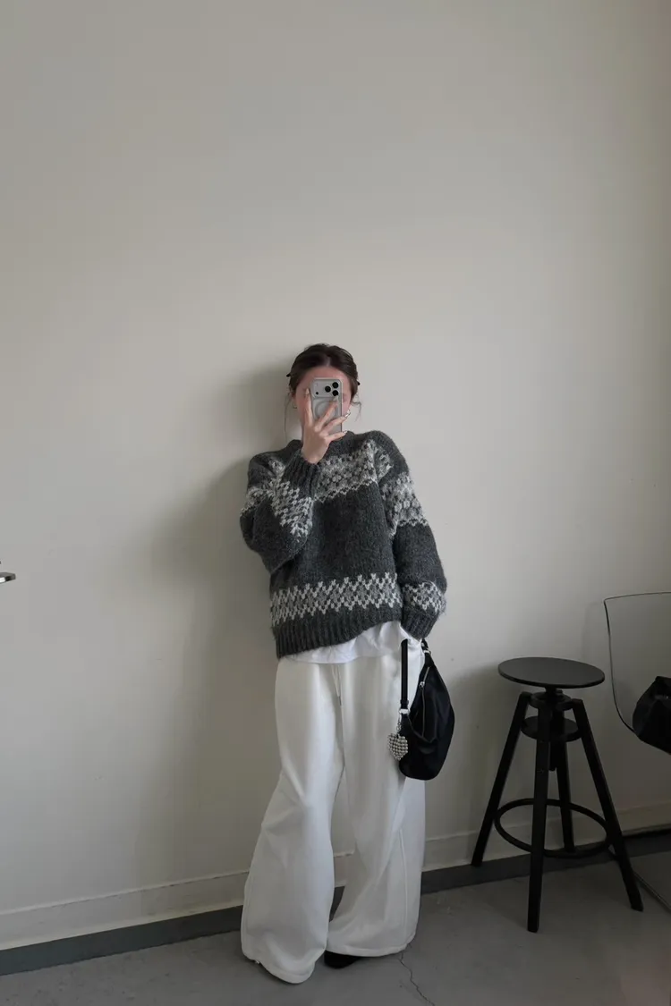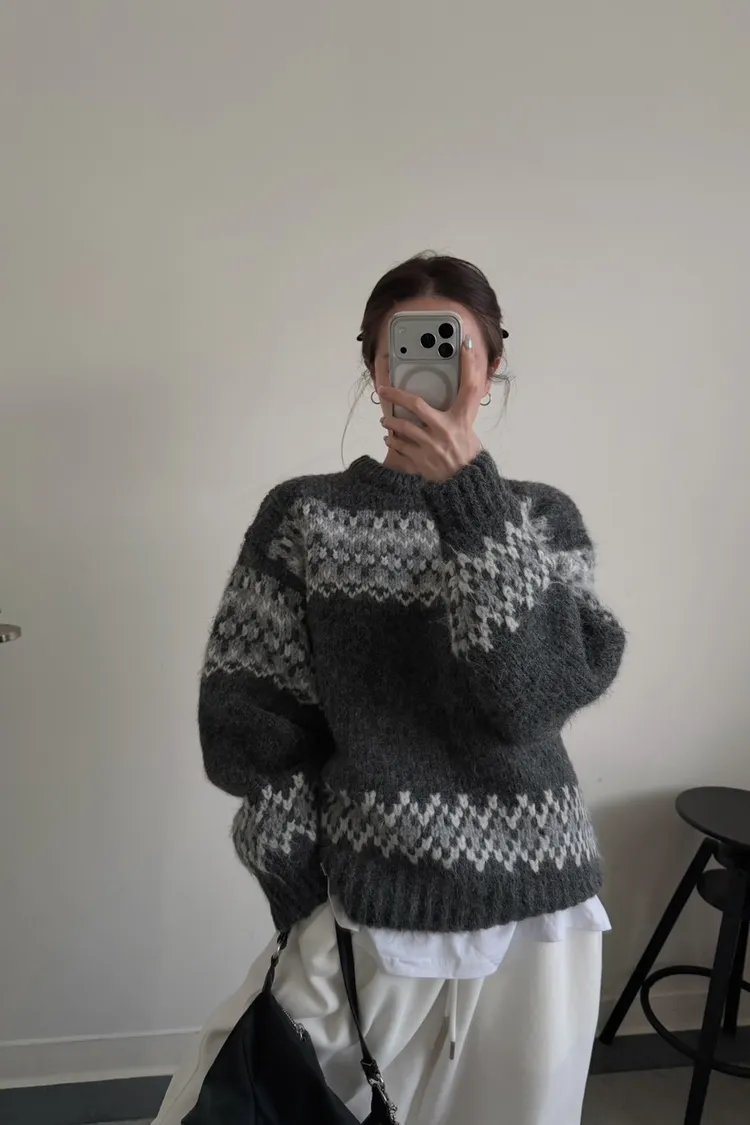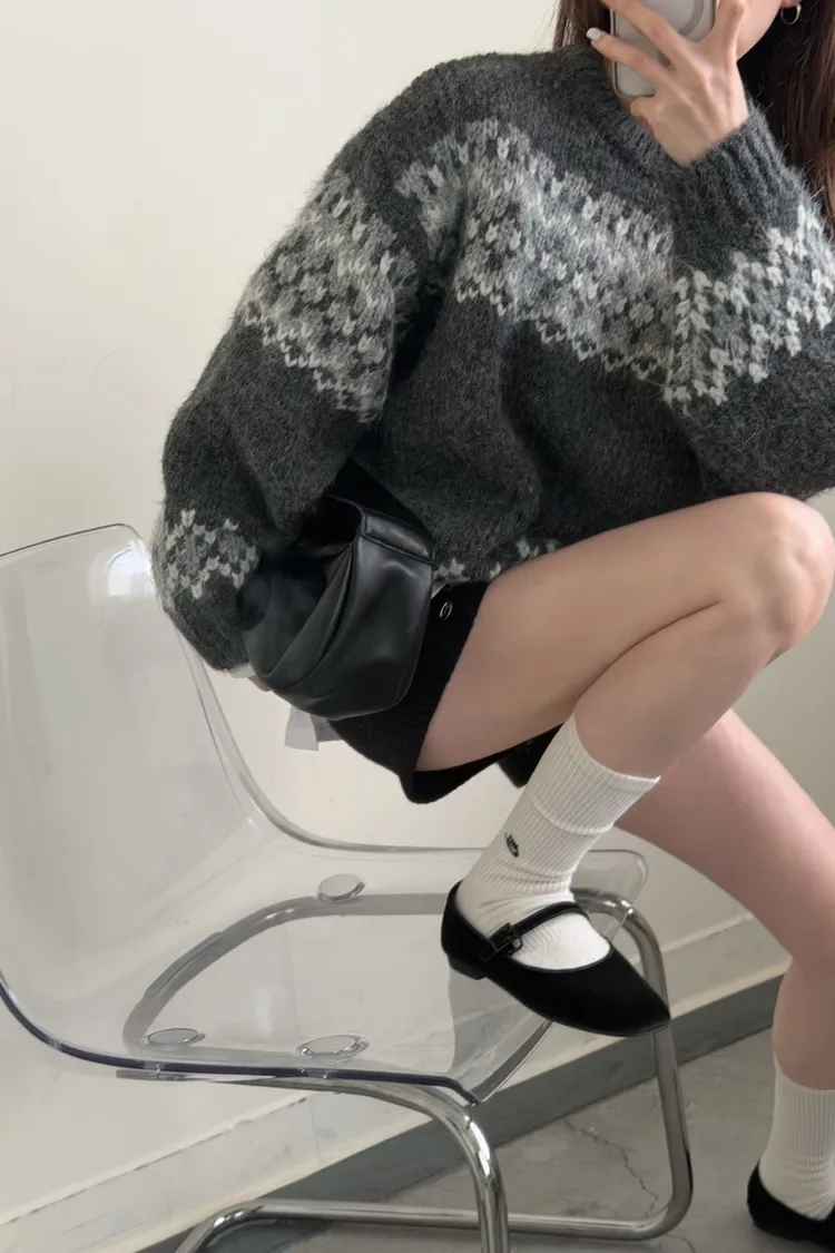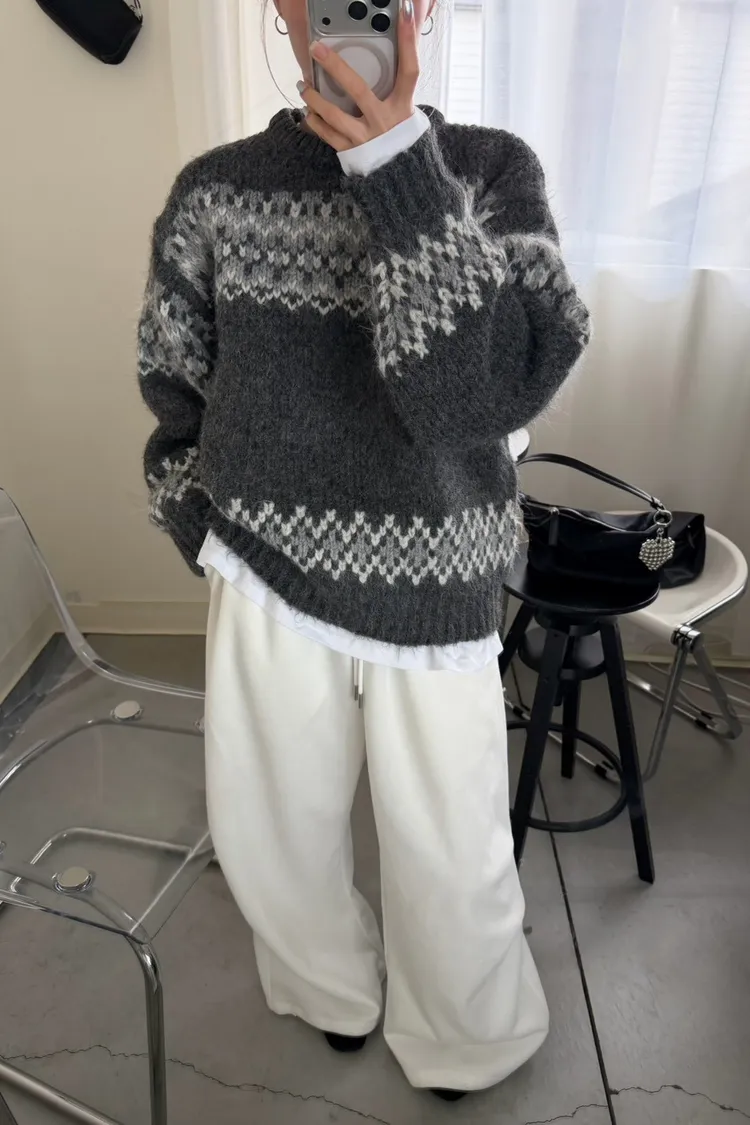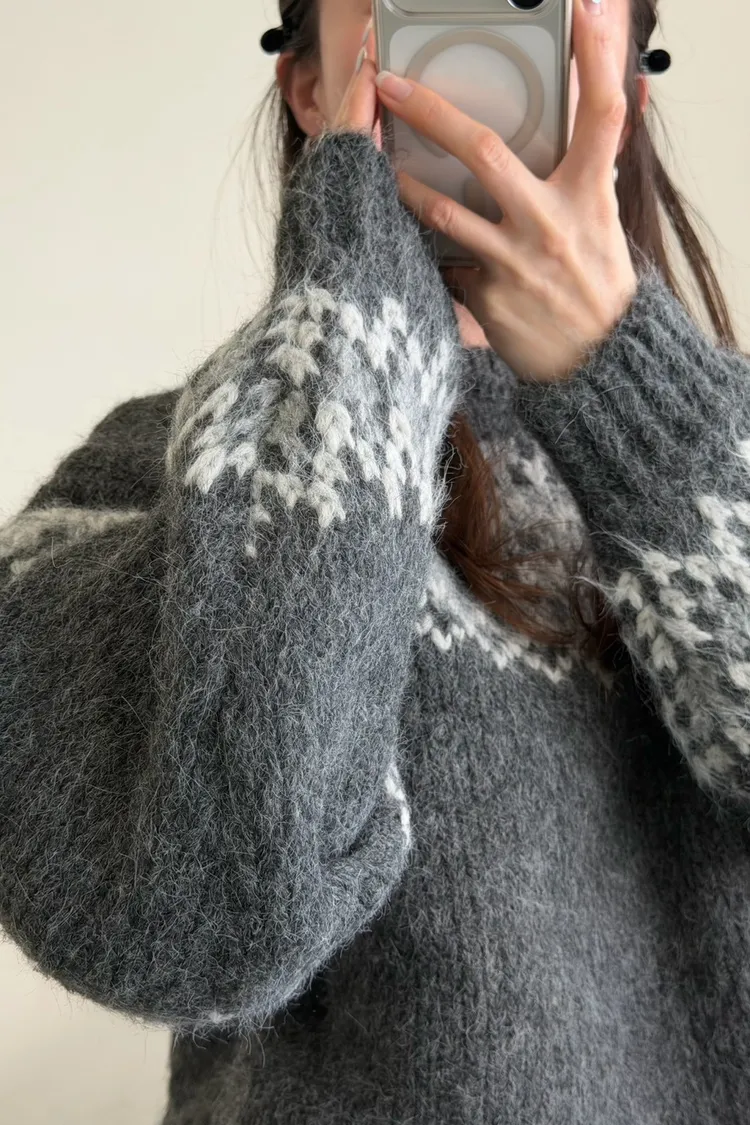 KOREA 灰白色 雪花毛衣