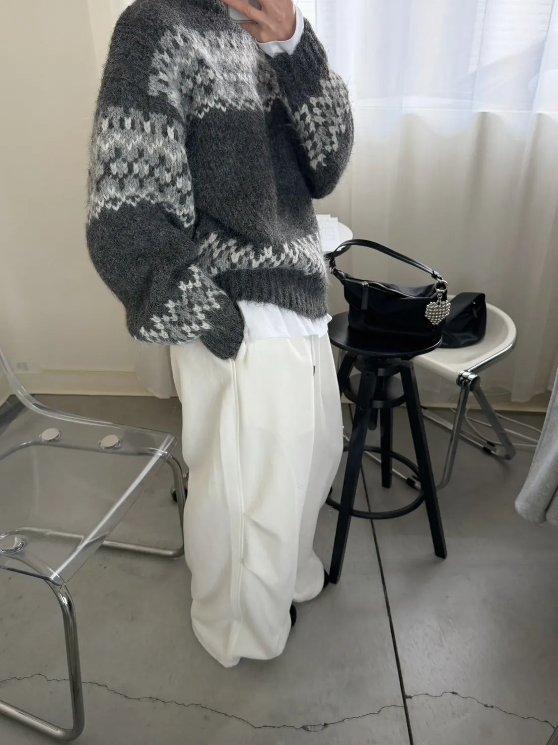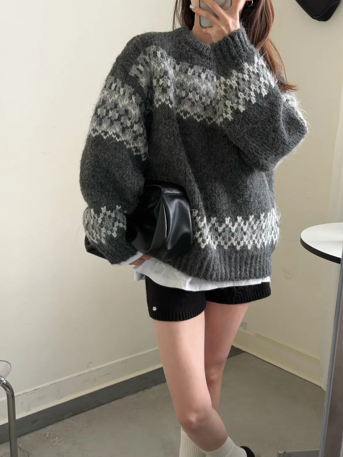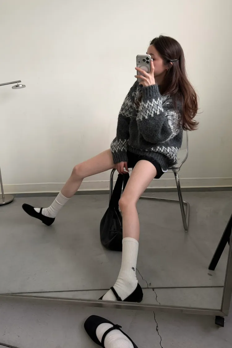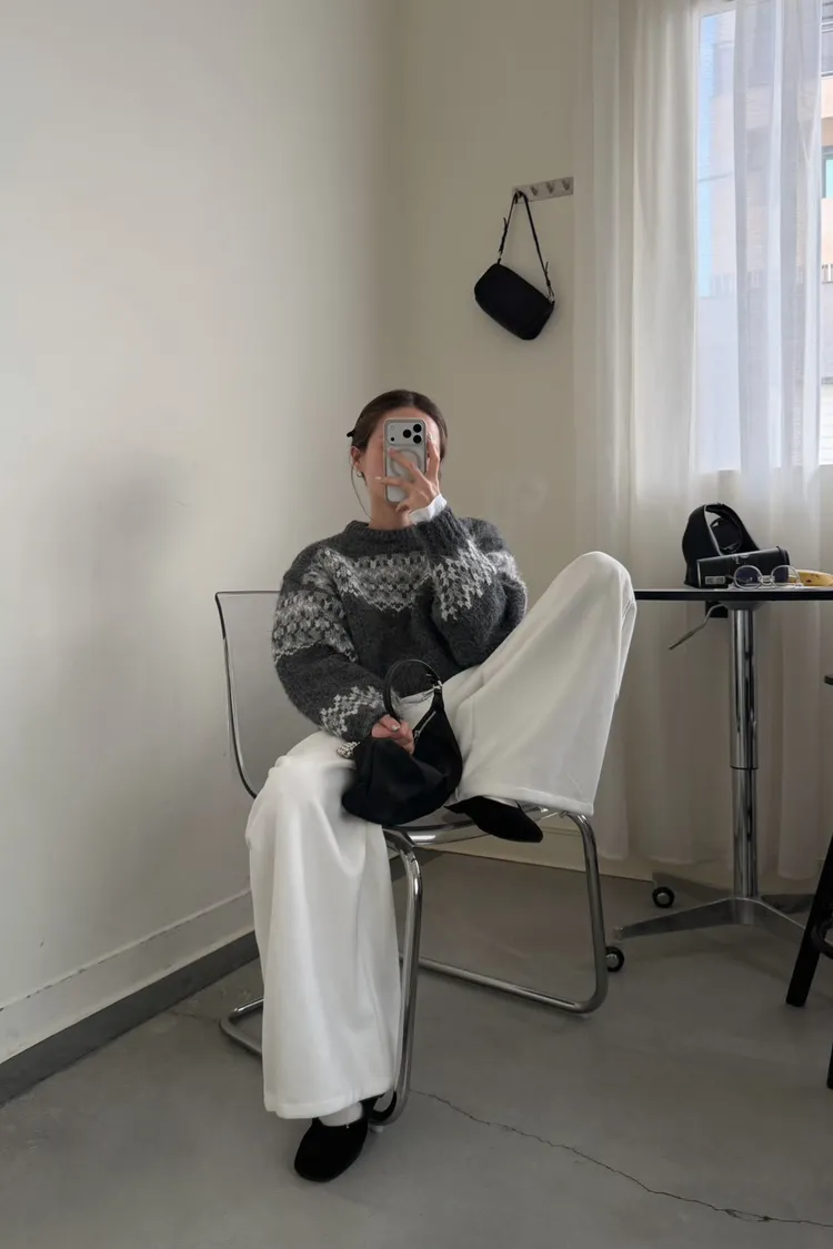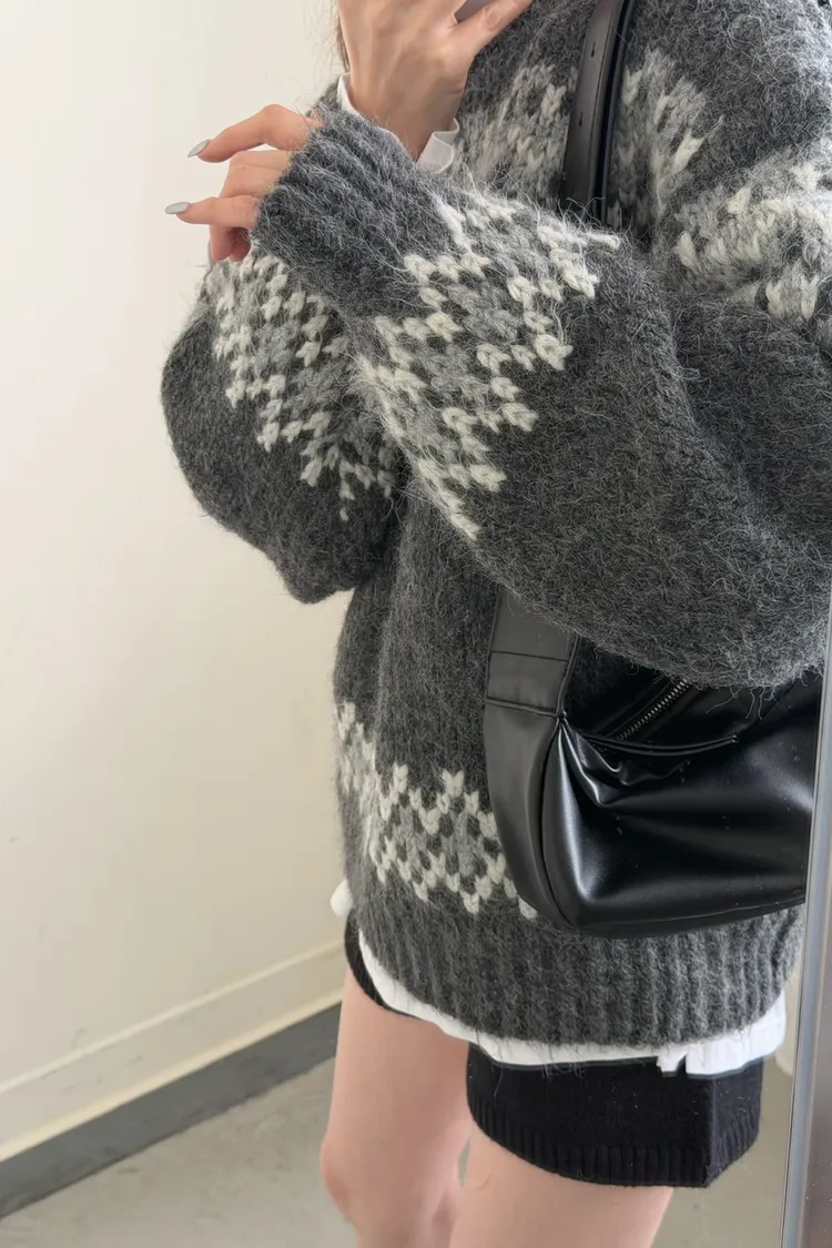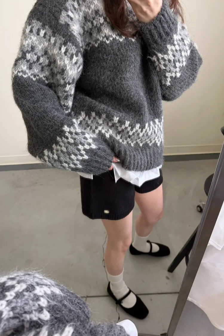 KOREA 灰白色 雪花毛衣