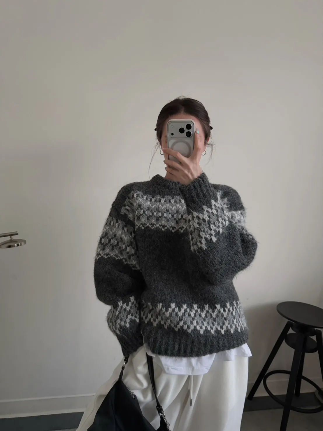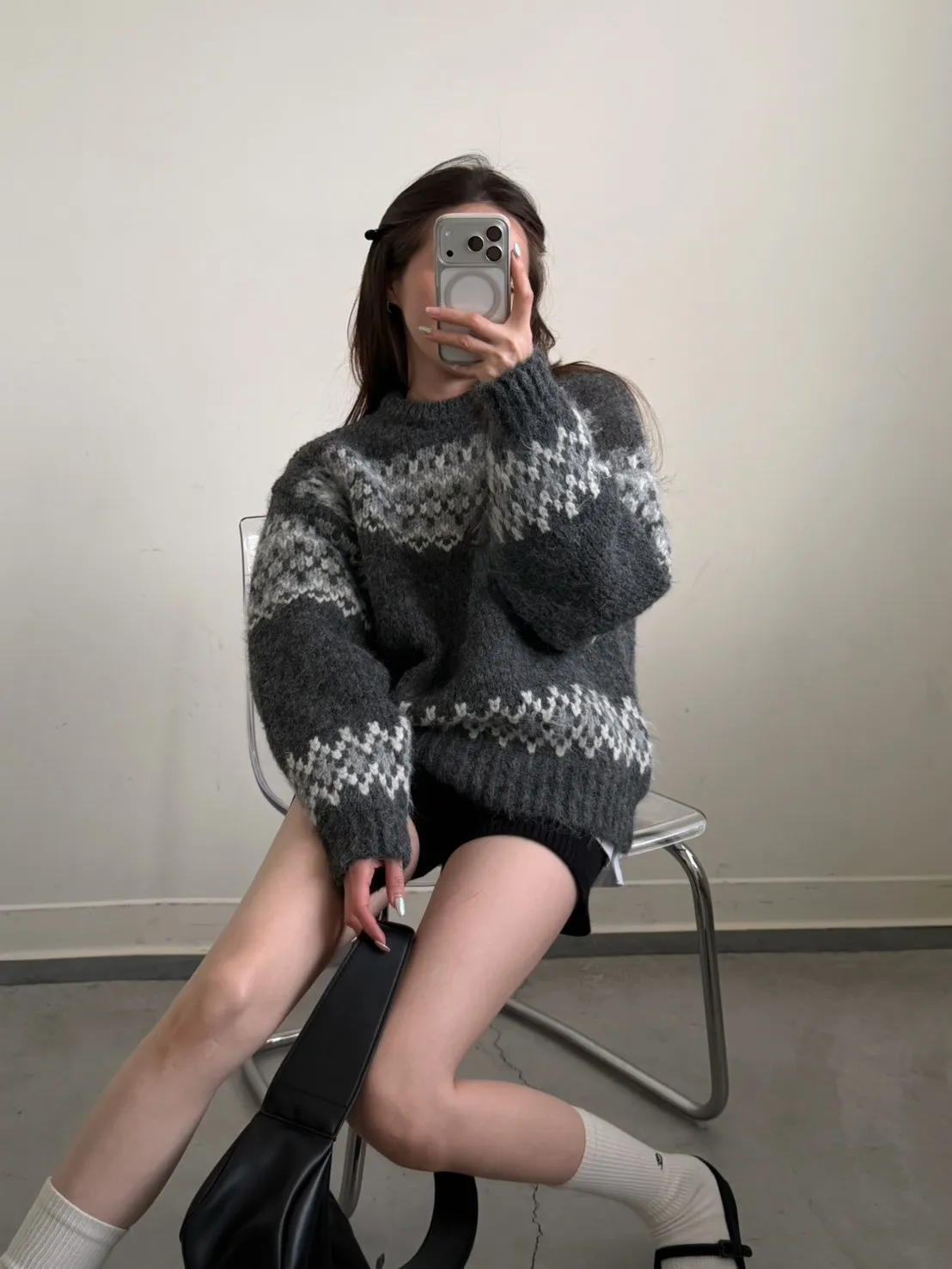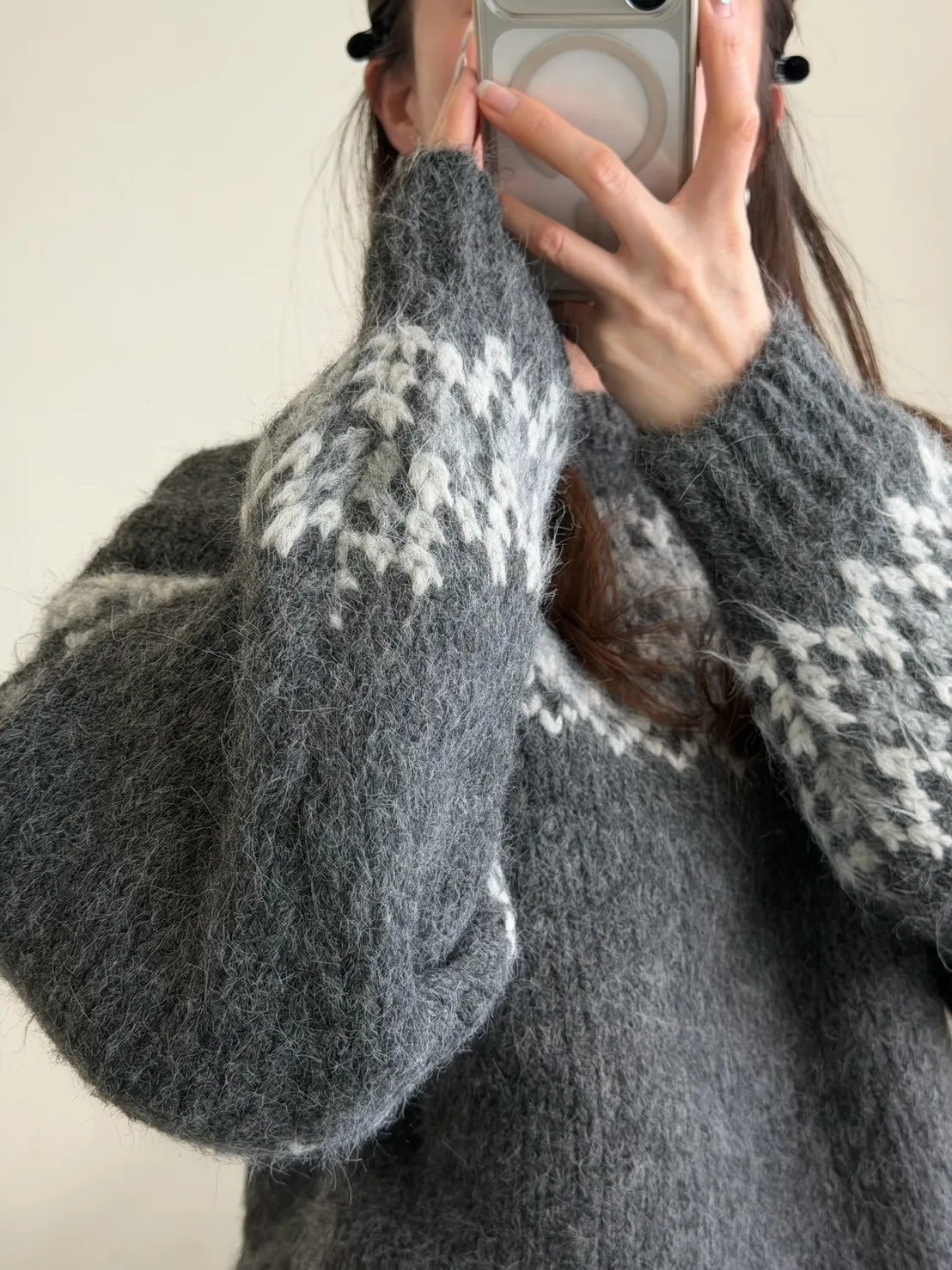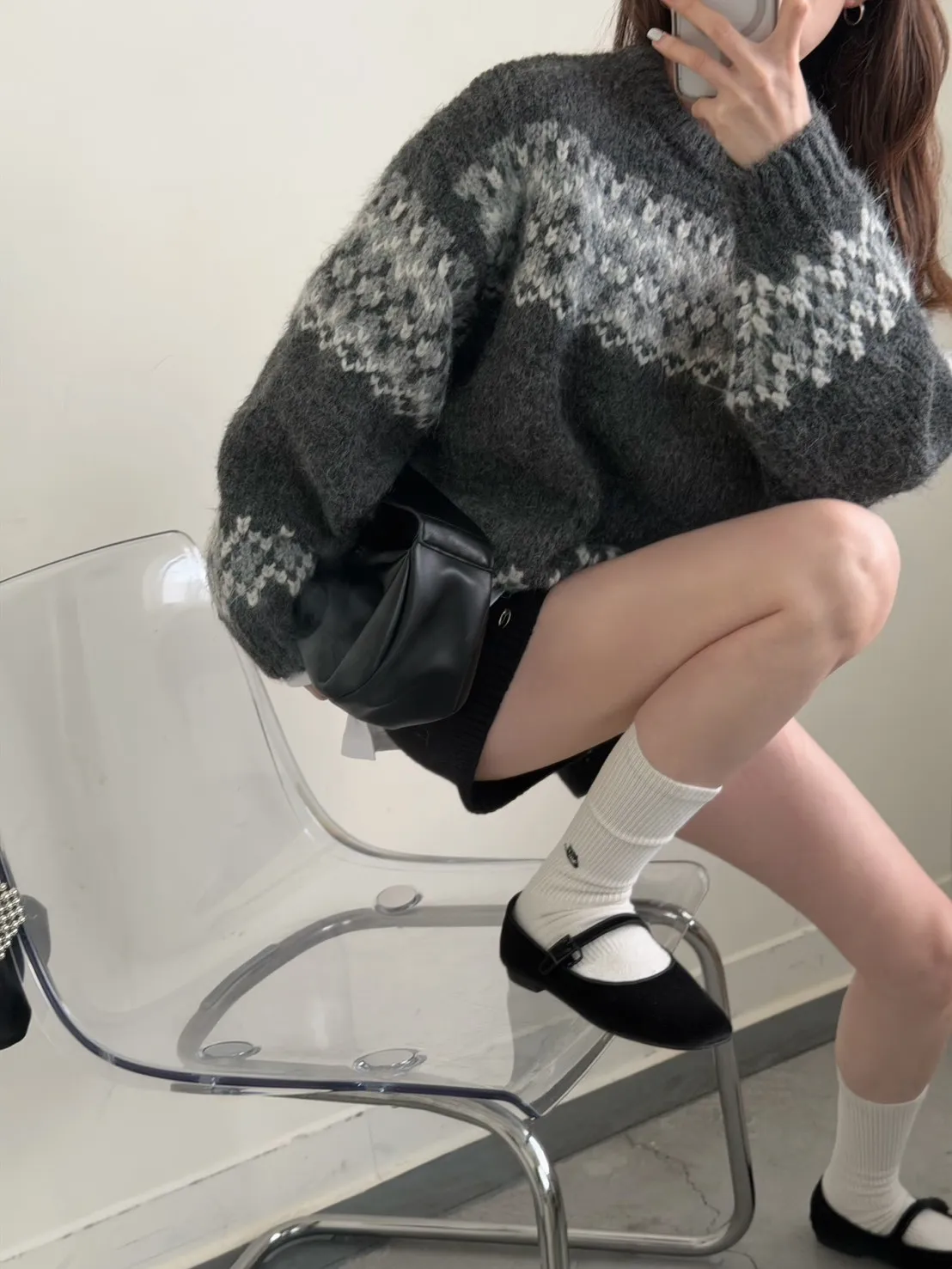 KOREA 灰白色 雪花毛衣