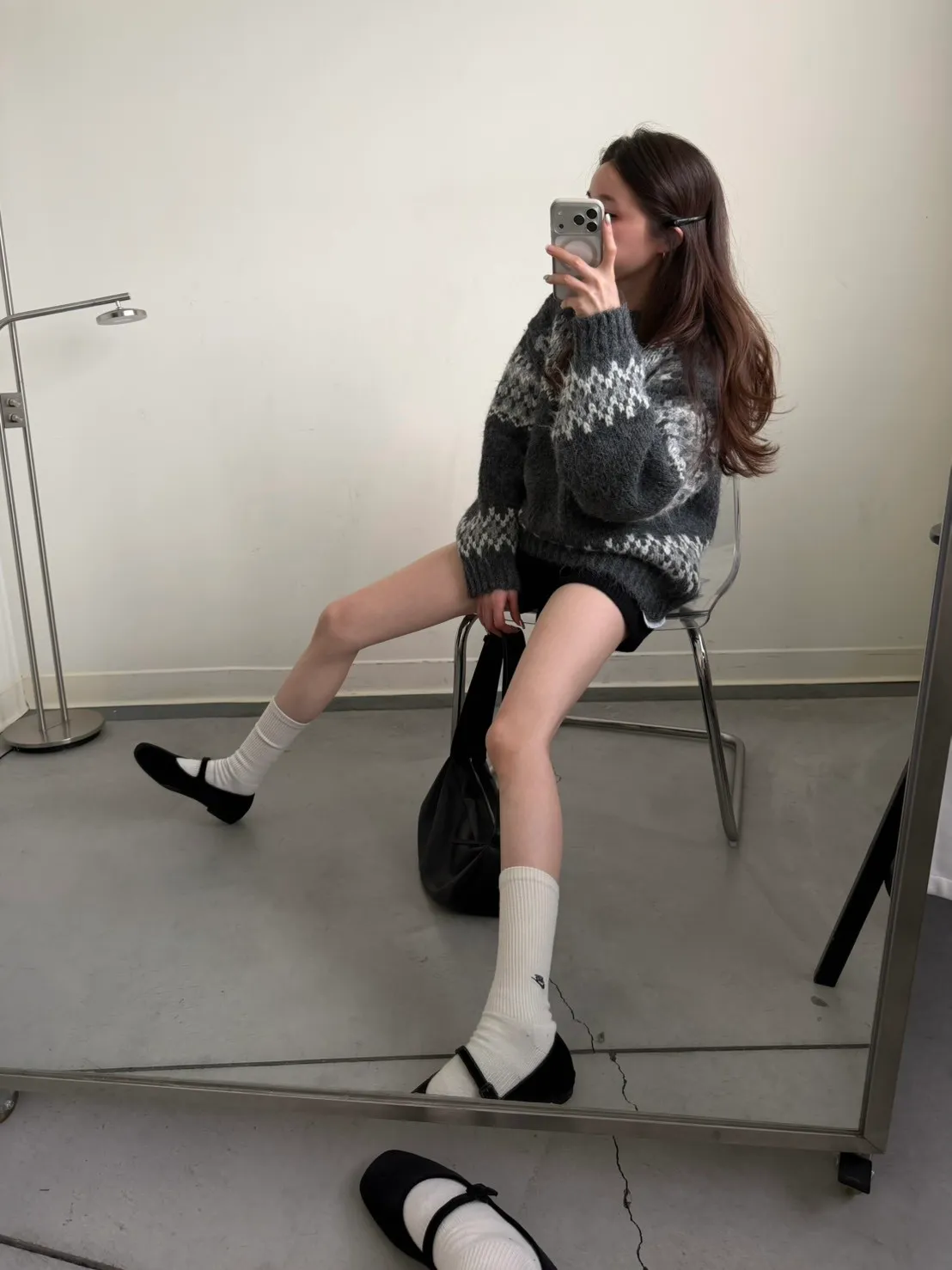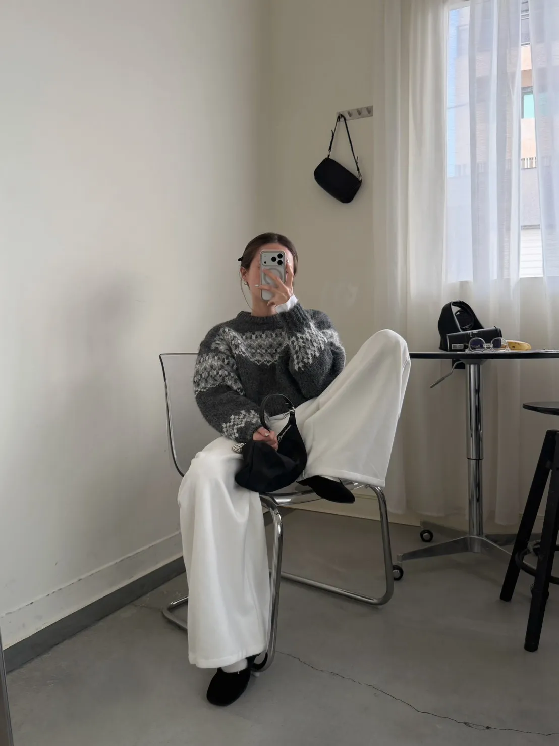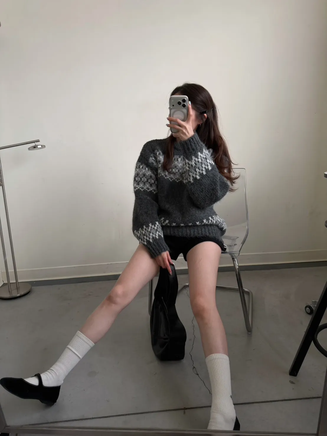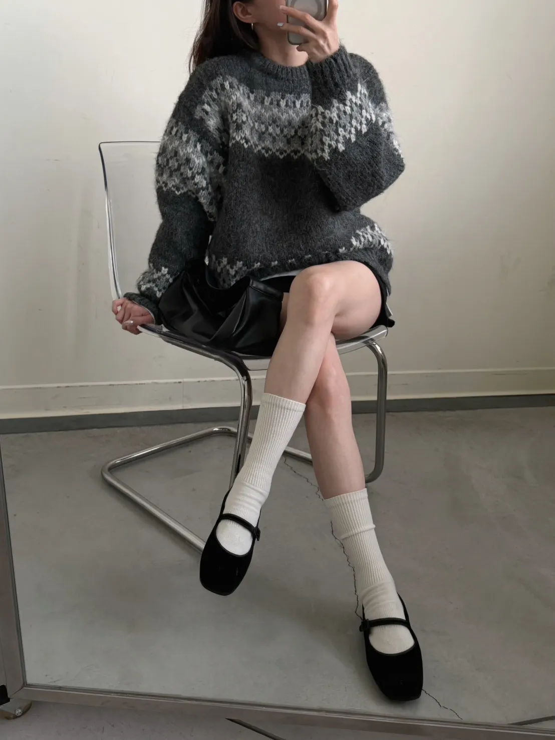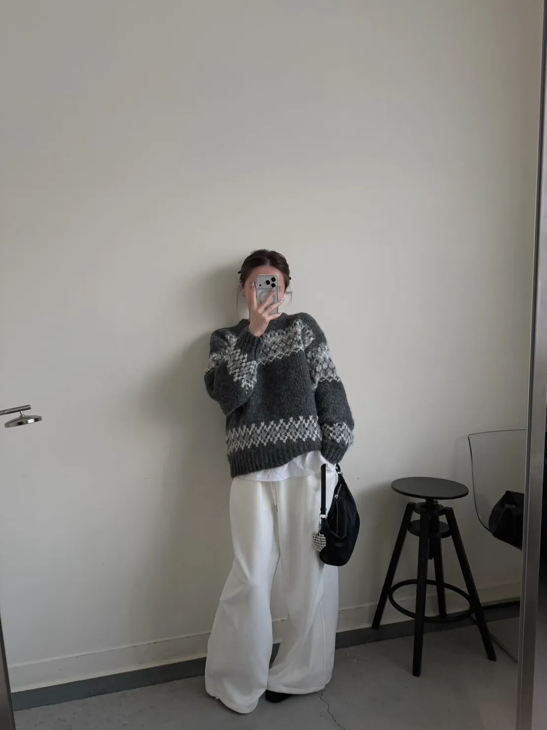 KOREA 灰白色 雪花毛衣