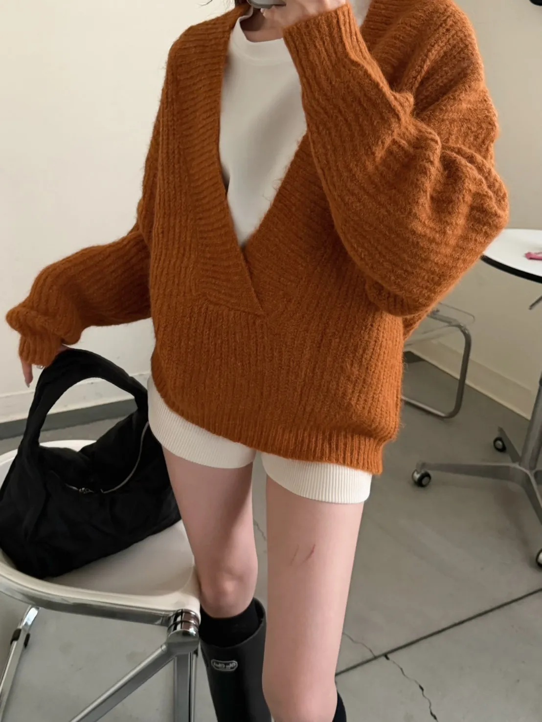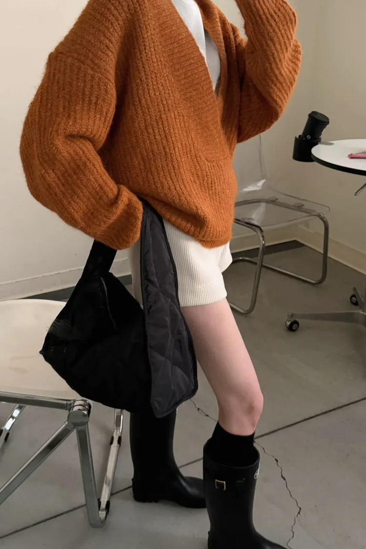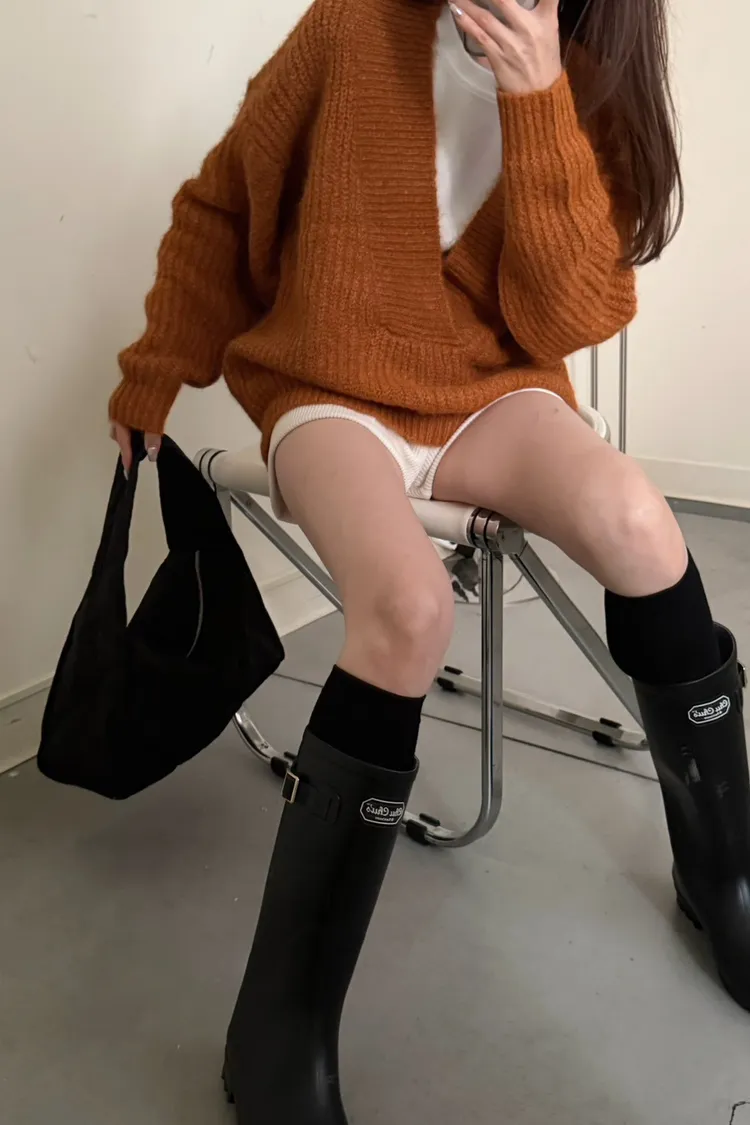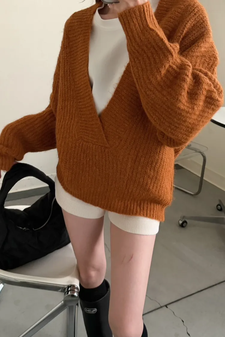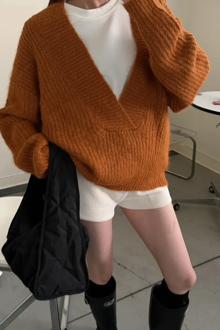 橘色 太美了!18%羊毛 大V領高密度羊毛針織毛衣