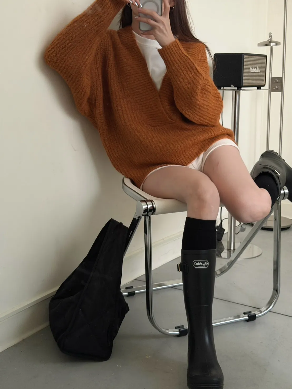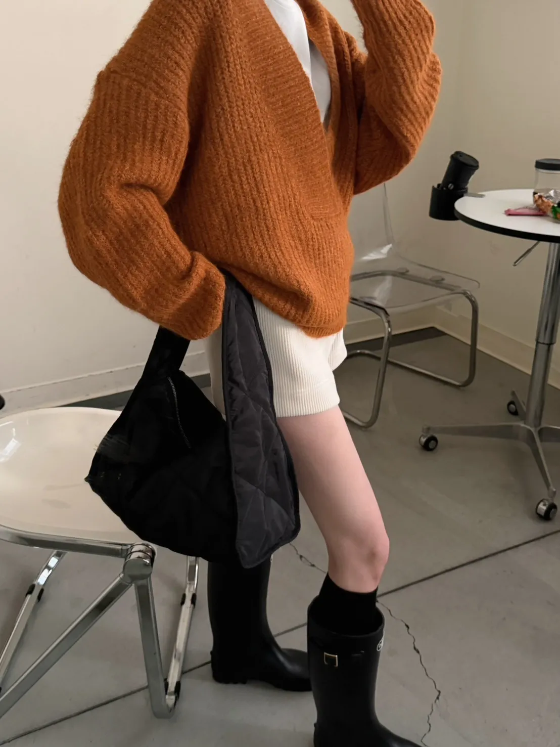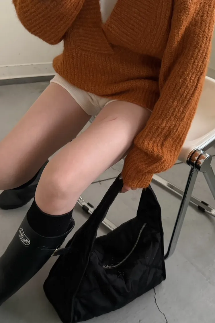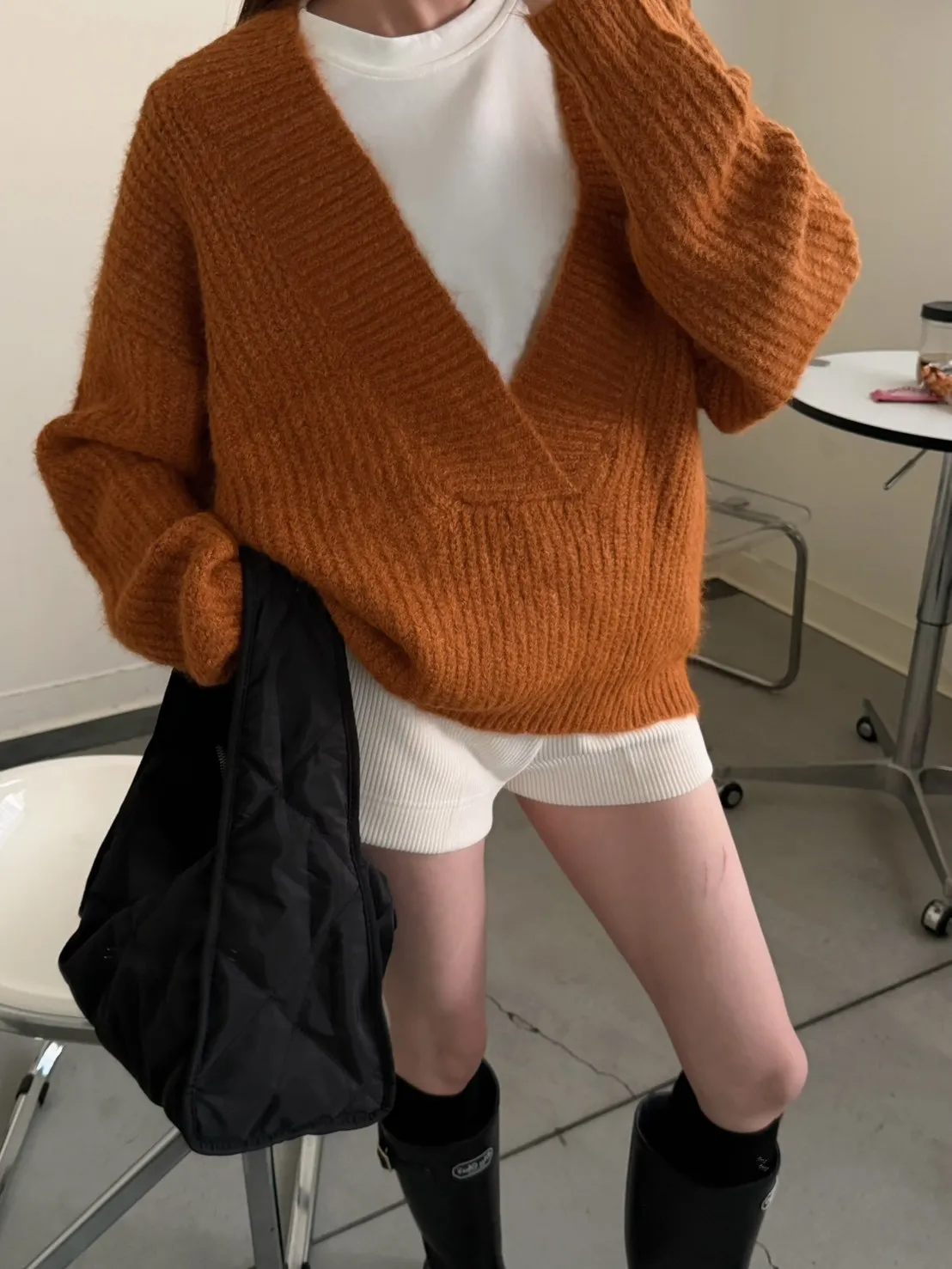 橘色 太美了!18%羊毛 大V領高密度羊毛針織毛衣