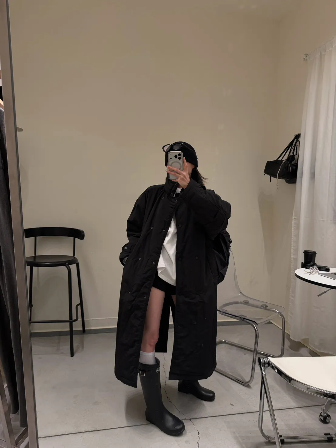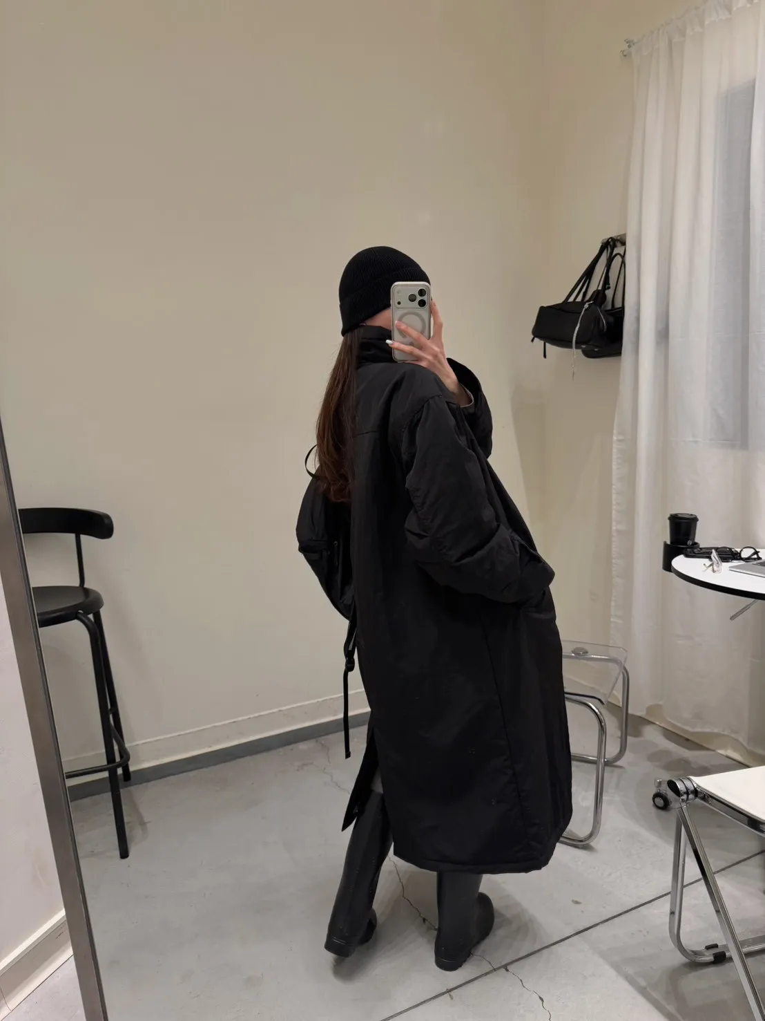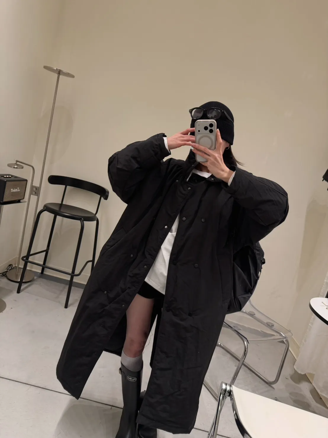 KOREA 黑色 立領長版鋪棉外套