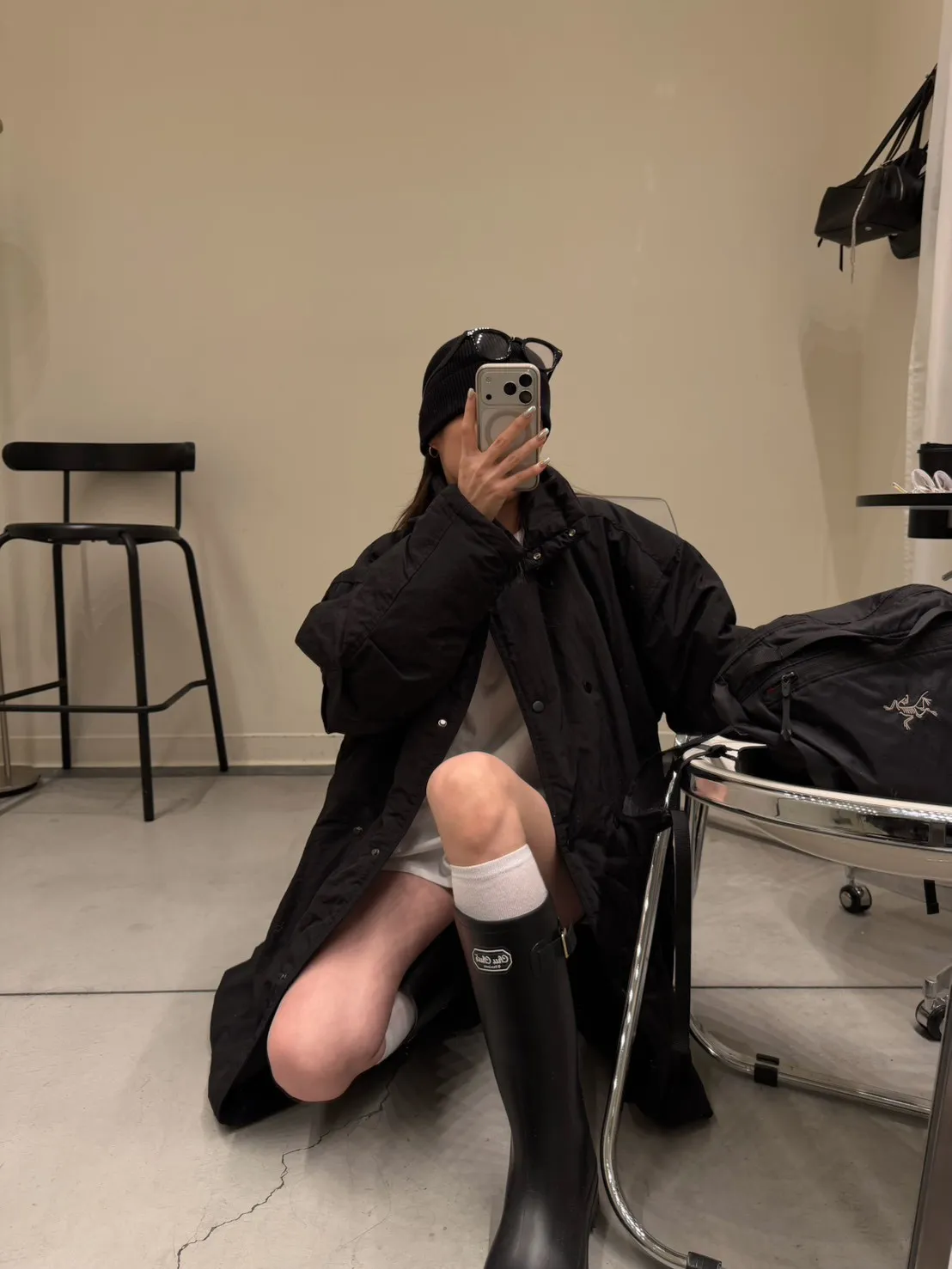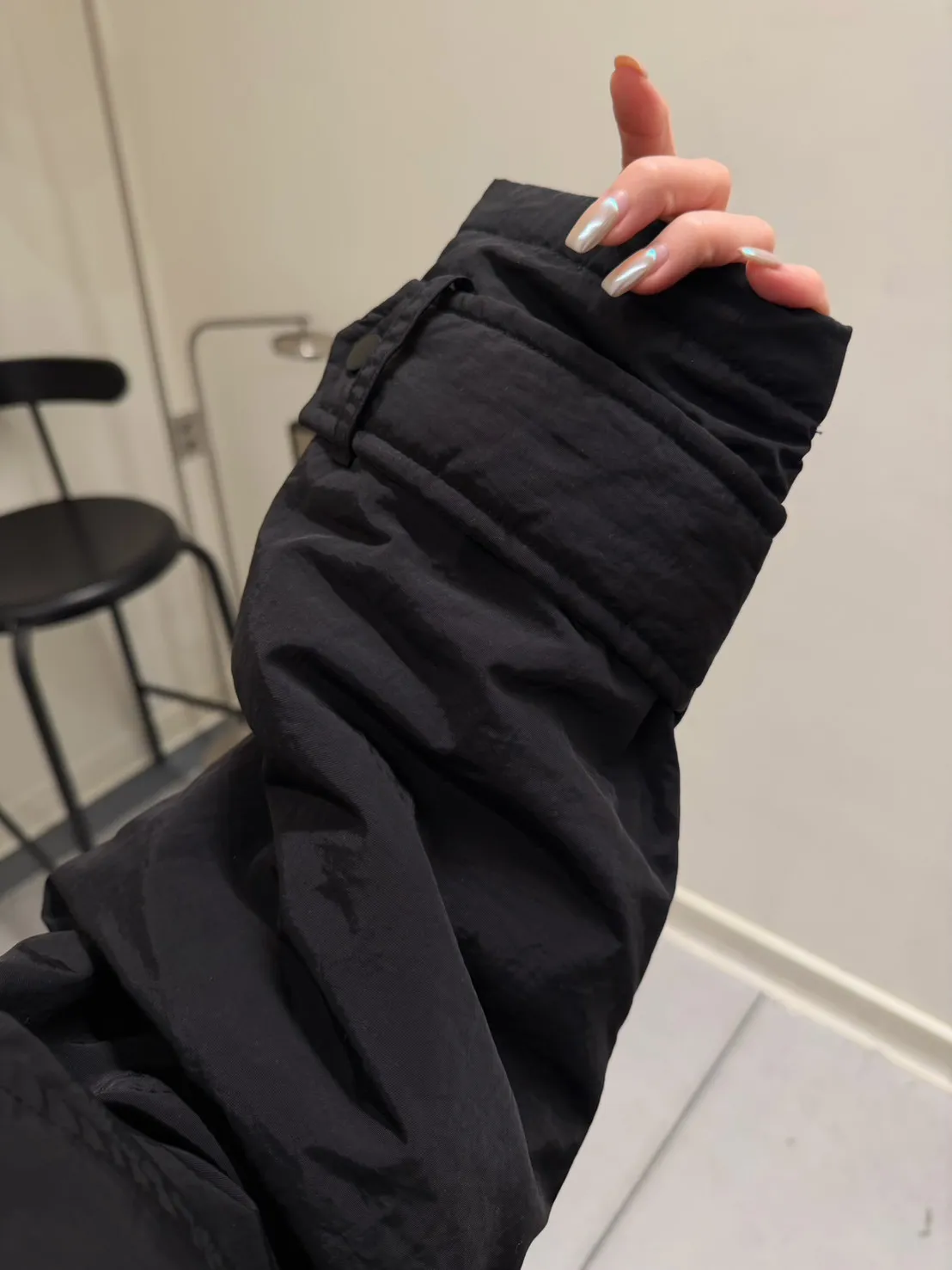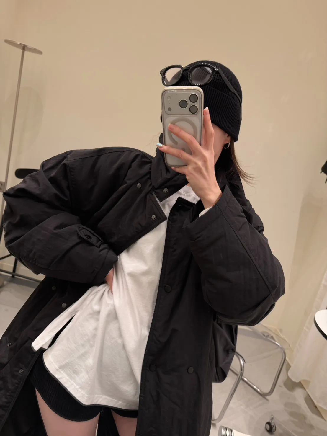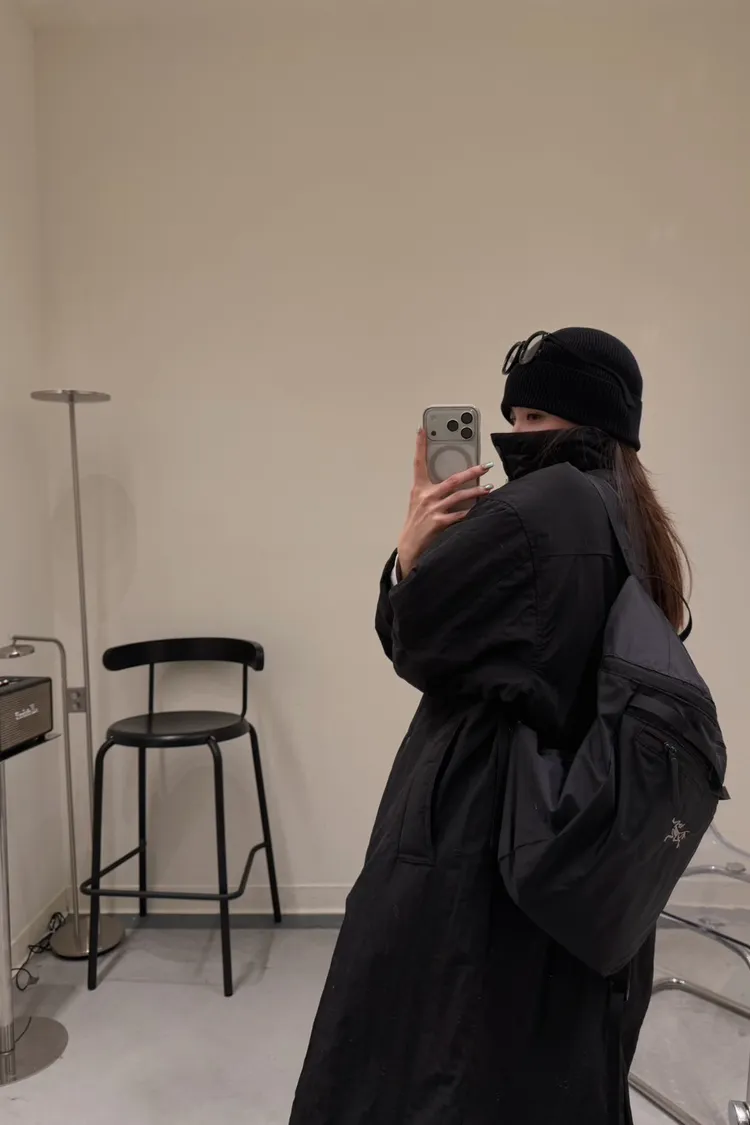 KOREA 黑色 立領長版鋪棉外套
