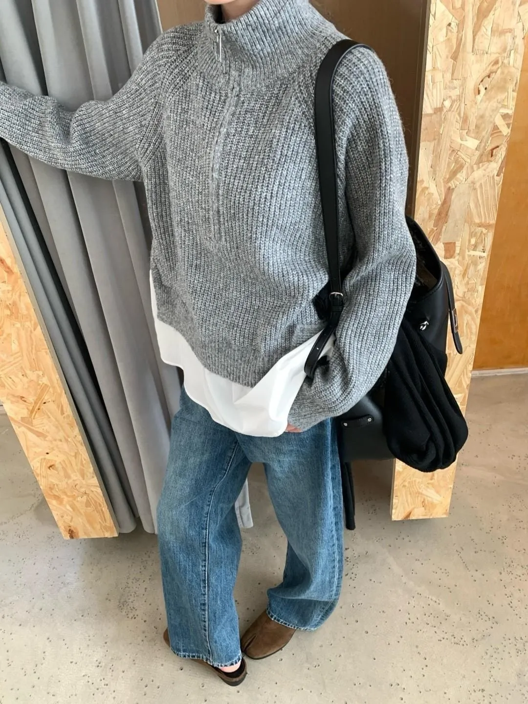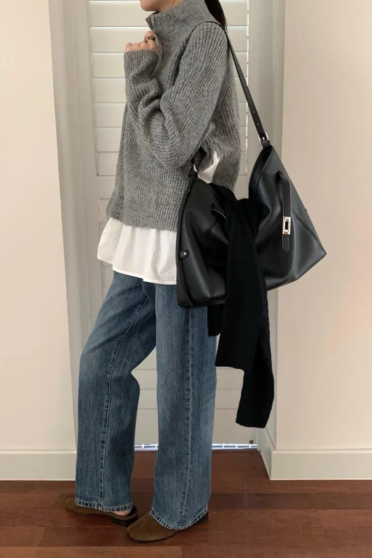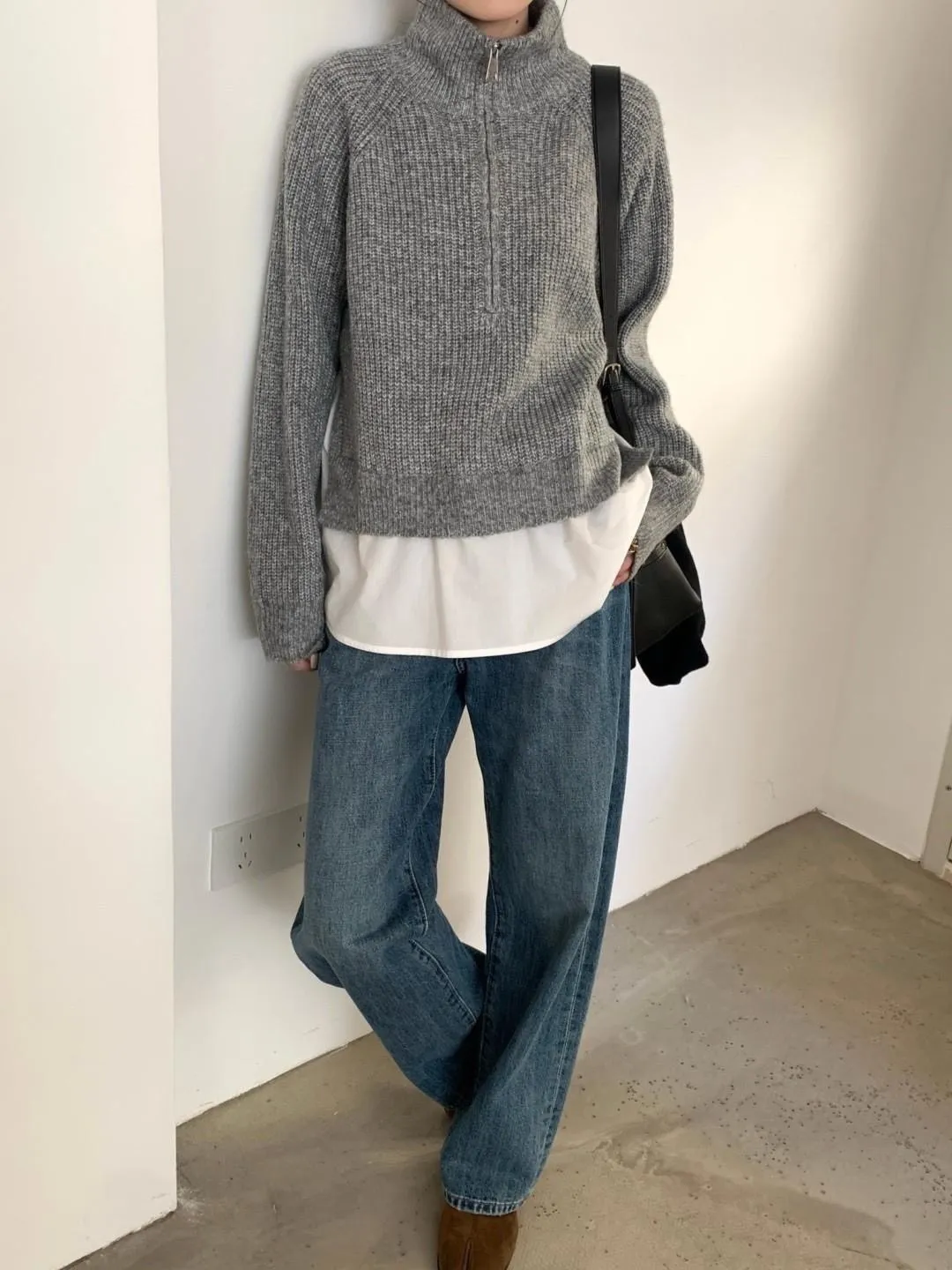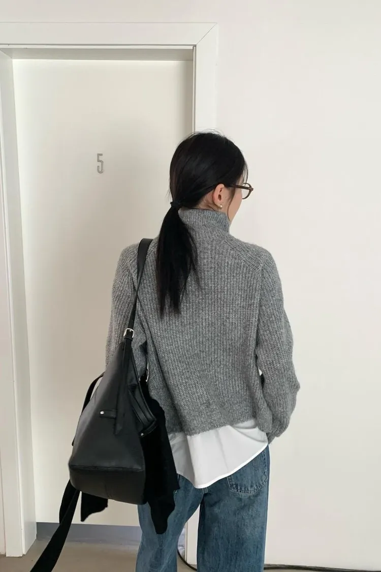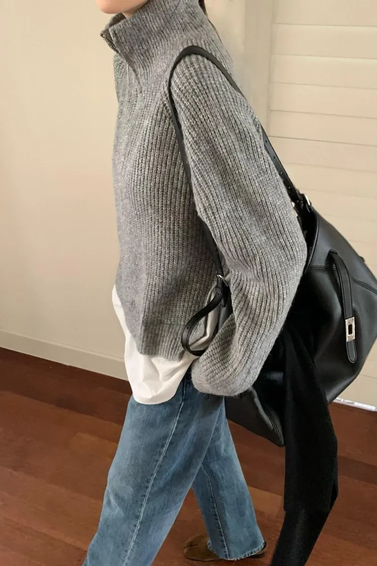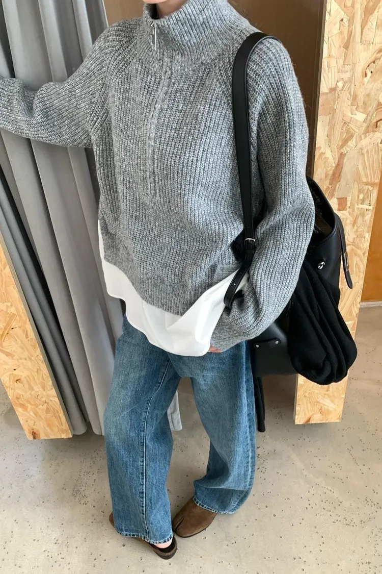 灰色 簡約休閒假兩件毛衣