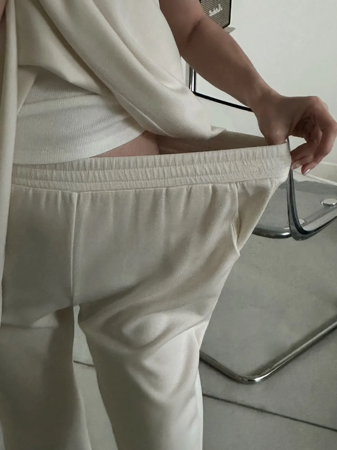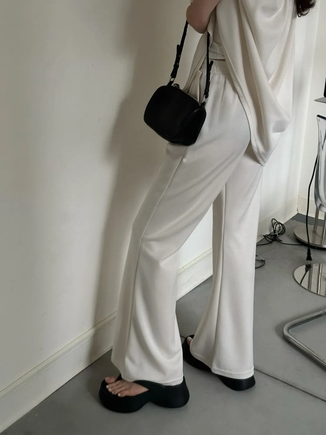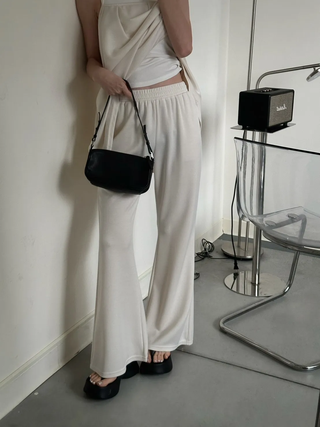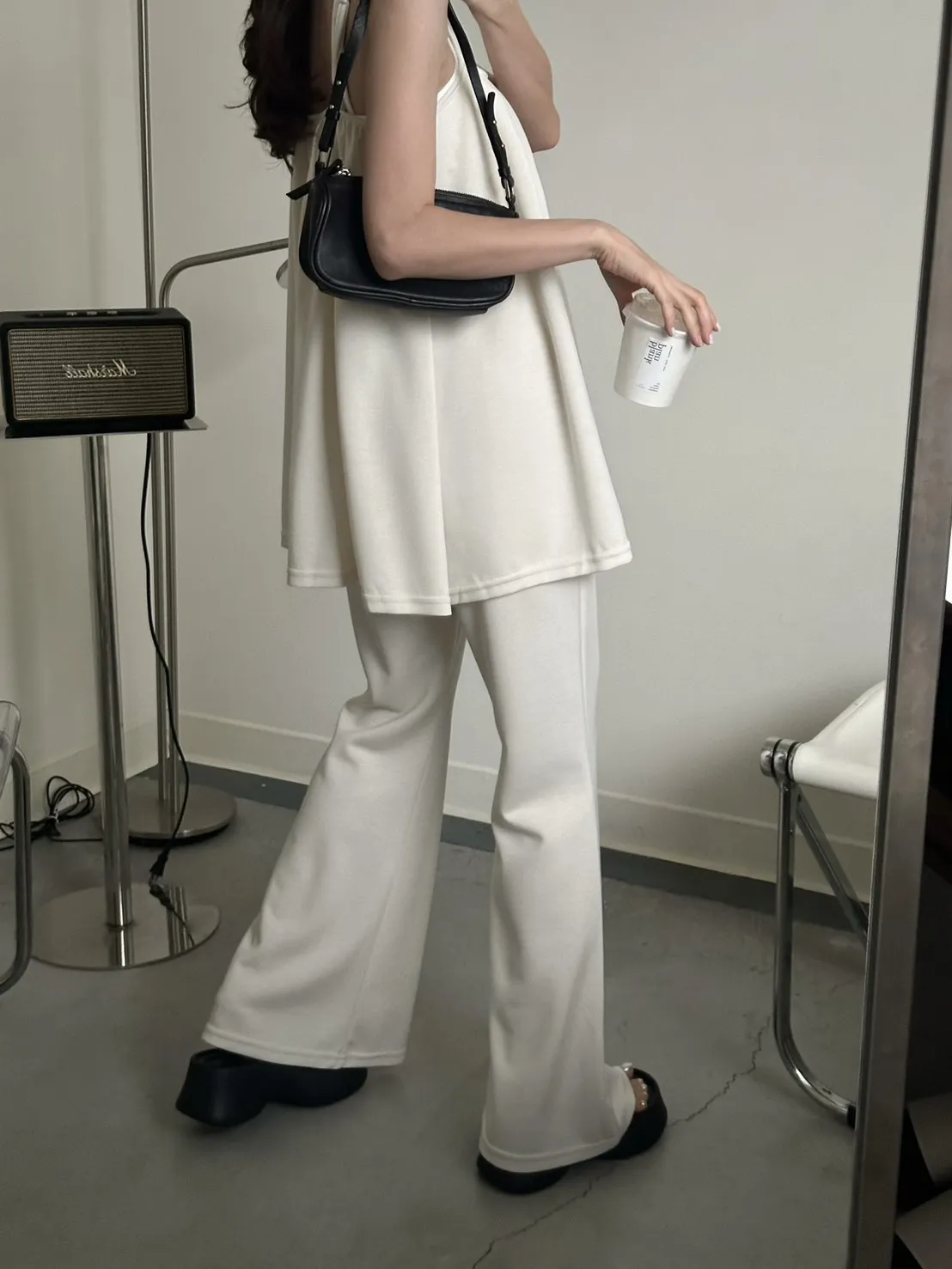 (現貨)奶白色 細肩壓褶太空涼感棉質背心+褲子SET
