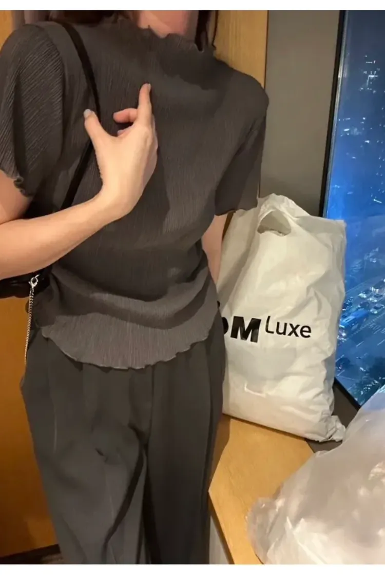 SALE (43) Korea 灰色 太美!坑紋捲邊上衣